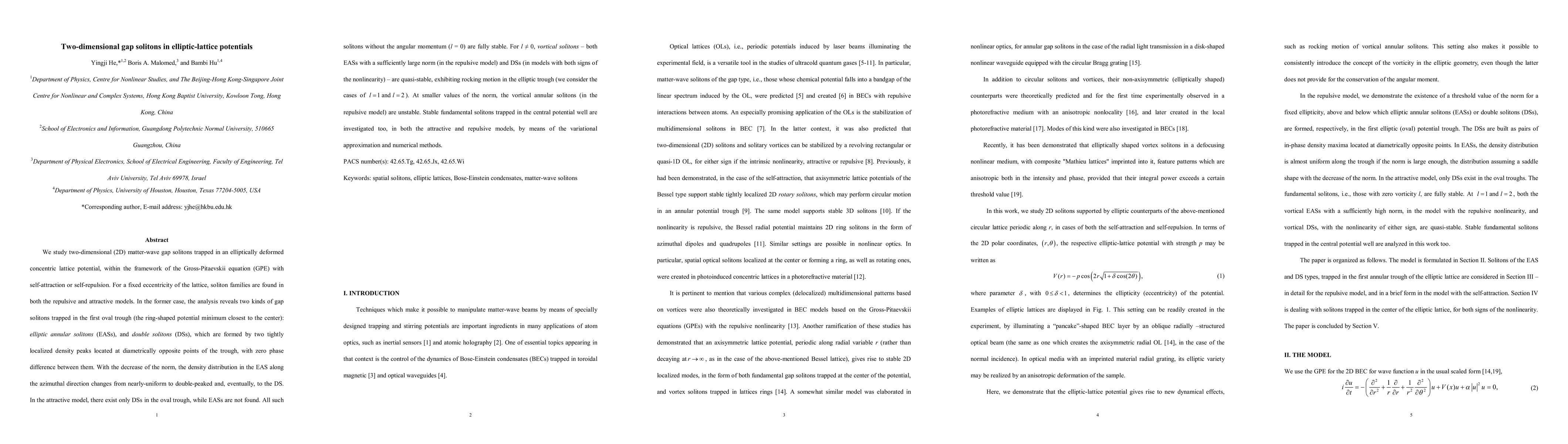 Researchers discovered gap solitons in 2D matter-wave systems trapped in elliptically deformed lattice potentials, finding stable and quasi-stable soliton families with varying properties depending on the model's nonlinearity and angular momentum.