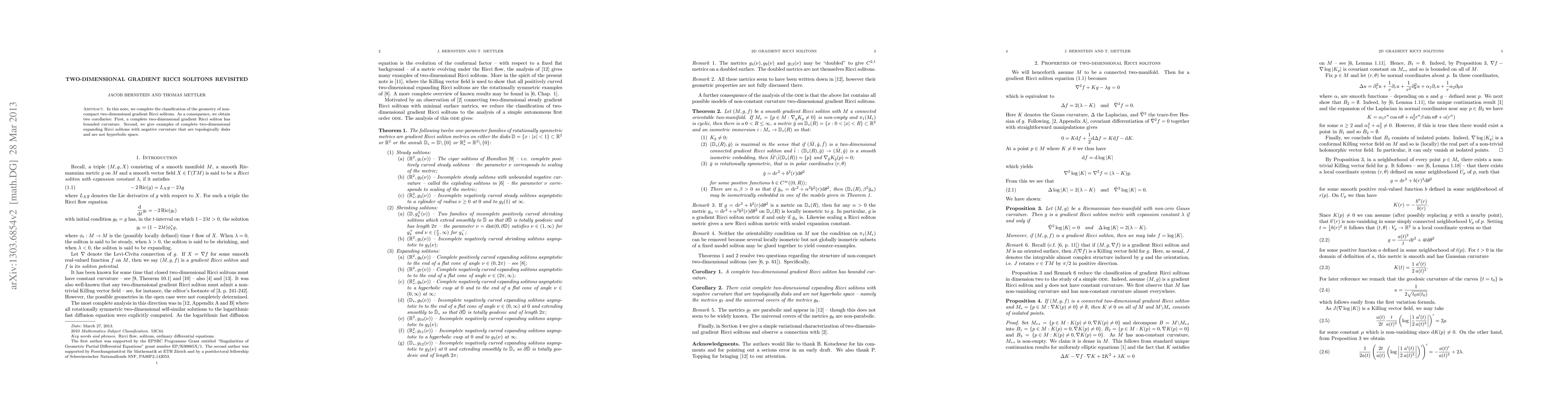 The paper completes the classification of the geometry of non-compact two-dimensional gradient Ricci solitons using autonomous first-order ODEs and analyzing the qualitative behavior of solutions.