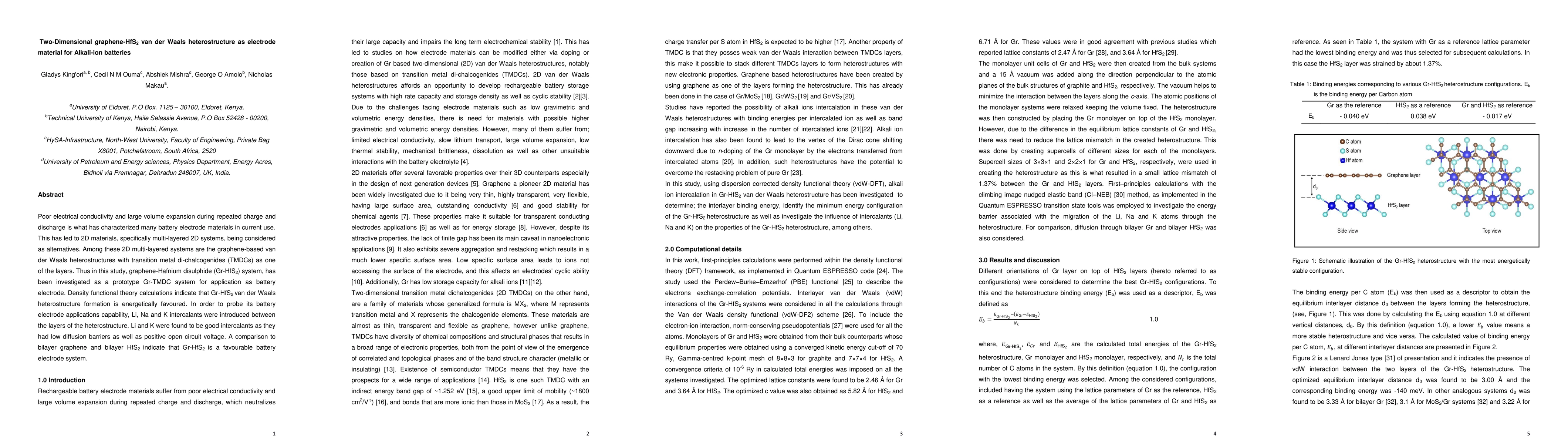 Poor electrical conductivity and large volume expansion during repeated charge and discharge is what has characterized many battery electrode materials in current use. This has led to 2D materials, specifically multi-layered 2D systems, being considered as alternatives. Among these 2D multi-layered systems are the graphene-based van der Waals heterostructures with transition metal di-chalcogenides (TMDCs) as one of the layers. Thus in this study, graphene-Hafnium disulphide (Gr-HfS$_2$) system, has been investigated as a prototype Gr-TMDC system for application as battery electrode. Density functional theory calculations indicate that Gr-HfS$_2$ van der Waals heterostructure formation is energetically favoured. In order to probe its battery electrode applications capability, Li, Na and K intercalants were introduced between the layers of the heterostructure. Li and K were found to be good intercalants as they had low diffusion barriers as well as positive open circuit voltage. A comparison to bilayer graphene and bilayer HfS$_2$ indicate that Gr-HfS$_2$ is a favourable battery electrode system.