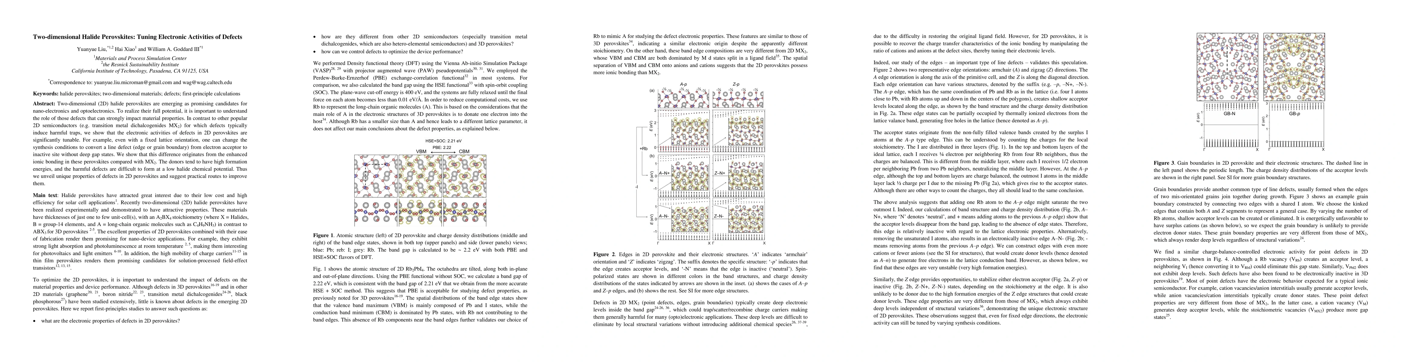 This paper explores the tunable electronic activities of defects in two-dimensional halide perovskites, demonstrating that defects can be converted from electron acceptors to inactive sites through synthesis condition adjustments, unlike in other 2D semiconductors. The enhanced ionic bonding in perovskites makes harmful defects less likely, offering a pathway to improve material properties.