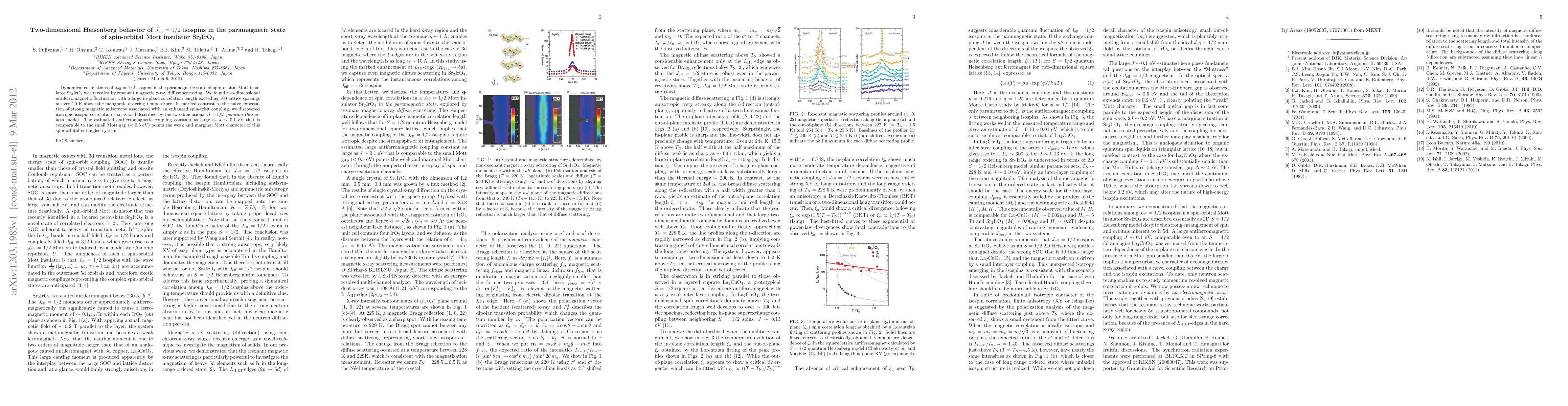 Research reveals two-dimensional antiferromagnetic fluctuations in Sr2IrO4 above its magnetic ordering temperature, exhibiting isotropic isospin correlations described by a two-dimensional S = 1/2 quantum Heisenberg model. The large antiferromagnetic coupling constant indicates a weak Mott insulating character.