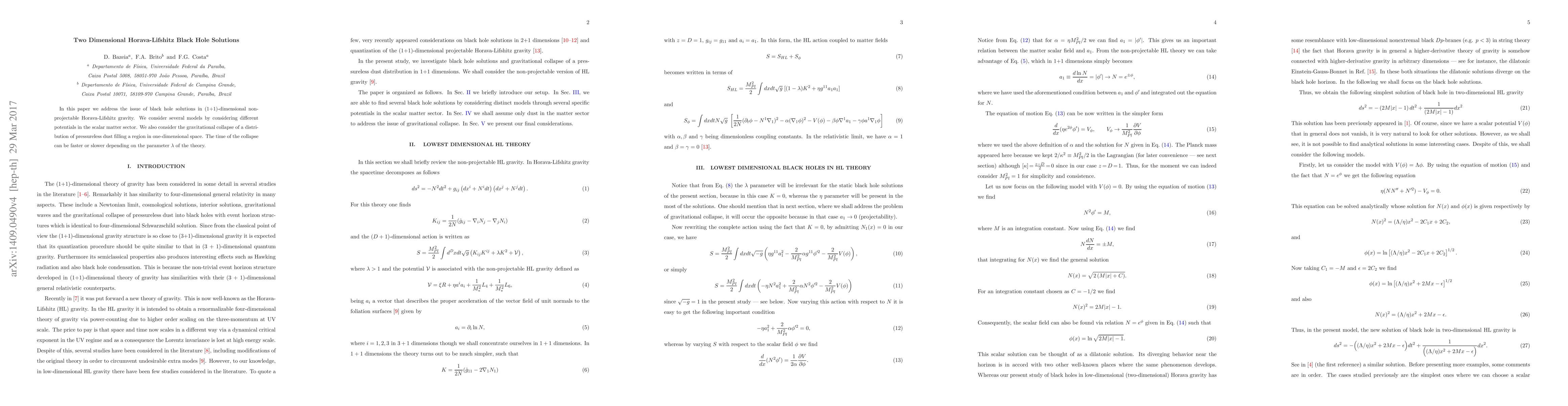 This research explores black hole solutions in (1+1)-dimensional non-projectable Horava-Lifshitz gravity, examining various models with different scalar matter potentials and gravitational collapse scenarios influenced by the parameter $\lambda$. The time of collapse varies based on $\lambda$, showcasing the theory's dynamics.