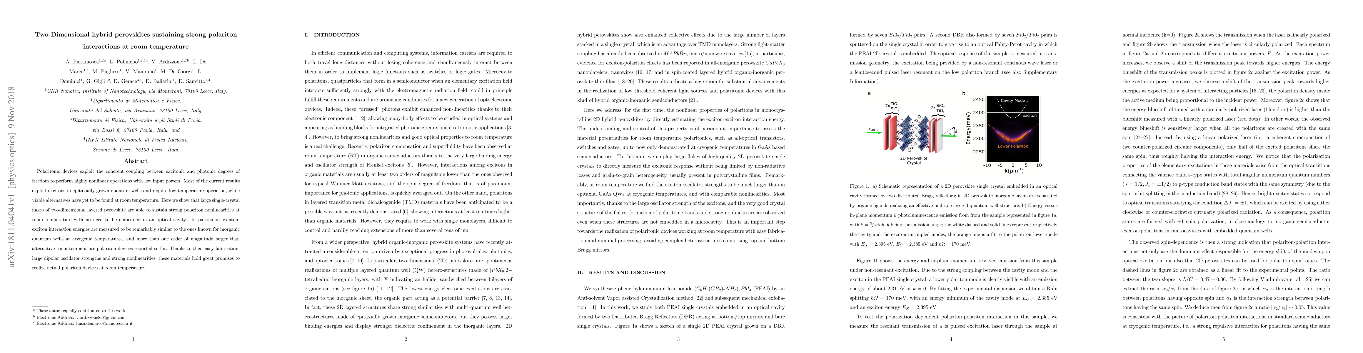 Summary: Research demonstrates that large single-crystal flakes of two-dimensional layered perovskites sustain strong exciton-photon coupling and nonlinear polariton interactions at room temperature without optical cavity embedding. These materials exhibit polariton nonlinearities comparable to those of inorganic quantum wells at cryogenic temperatures and promise to enable practical polariton devices at ambient conditions.