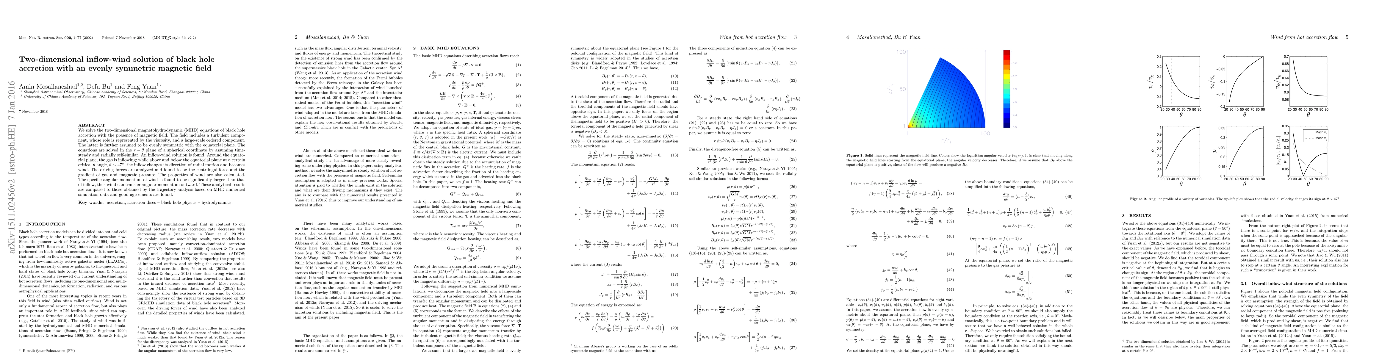 We solve the two-dimensional magnetohydrodynamic (MHD) equations of black hole accretion with the presence of magnetic field. The field includes a turbulent component, whose role is represented by the viscosity, and a large-scale ordered component. The latter is further assumed to be evenly symmetric with the equatorial plane. The equations are solved in the $r-\theta$ plane of a spherical coordinate by assuming time-steady and radially self-similar. An inflow-wind solution is found. Around the equatorial plane, the gas is inflowing; while above and below the equatorial plane at a certain critical $\theta$ angle, $\theta\sim 47^{\circ}$, the inflow changes its direction of radial motion and becomes wind. The driving forces are analyzed and found to be the centrifugal force and the gradient of gas and magnetic pressure. The properties of wind are also calculated. The specific angular momentum of wind is found to be significantly larger than that of inflow, thus wind can transfer angular momentum outward. These analytical results are compared to those obtained by the trajectory analysis based on MHD numerical simulation data and good agreements are found.