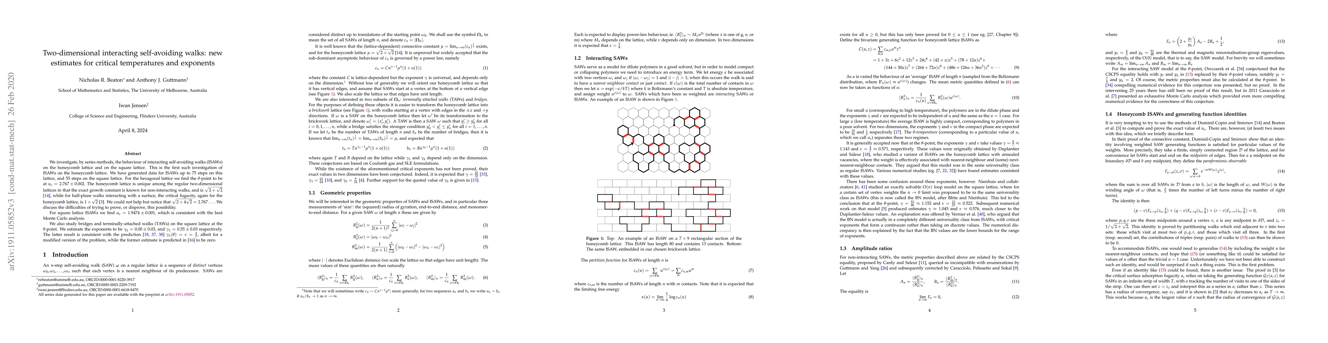This paper uses series methods to study interacting self-avoiding walks (ISAWs) on the honeycomb and square lattices, providing new estimates for critical temperatures and exponents. For the honeycomb lattice, the $\theta$-point is found at $u_\mathrm{c} = 2.767 \pm 0.002$, while for the square lattice, $u_\mathrm{c}=1.9474 \pm 0.001$.