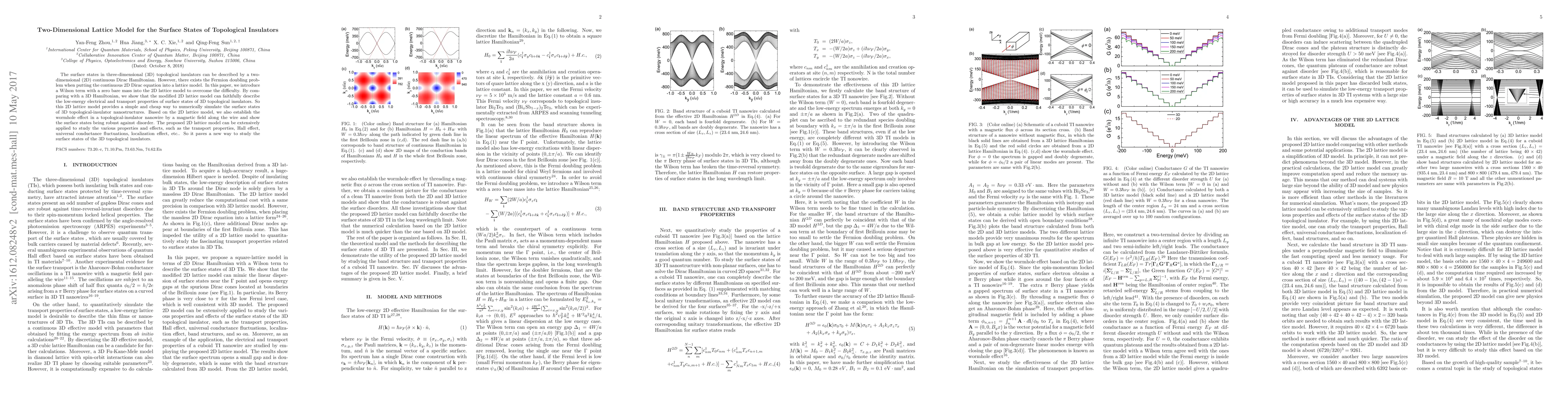 This paper introduces a modified two-dimensional lattice model with a Wilson term to accurately simulate the surface states of three-dimensional topological insulators, overcoming the Fermion doubling problem. The model demonstrates robustness against disorder and establishes the wormhole effect in TI nanowires, offering a cost-effective method for studying the electrical and transport properties of topological insulators.