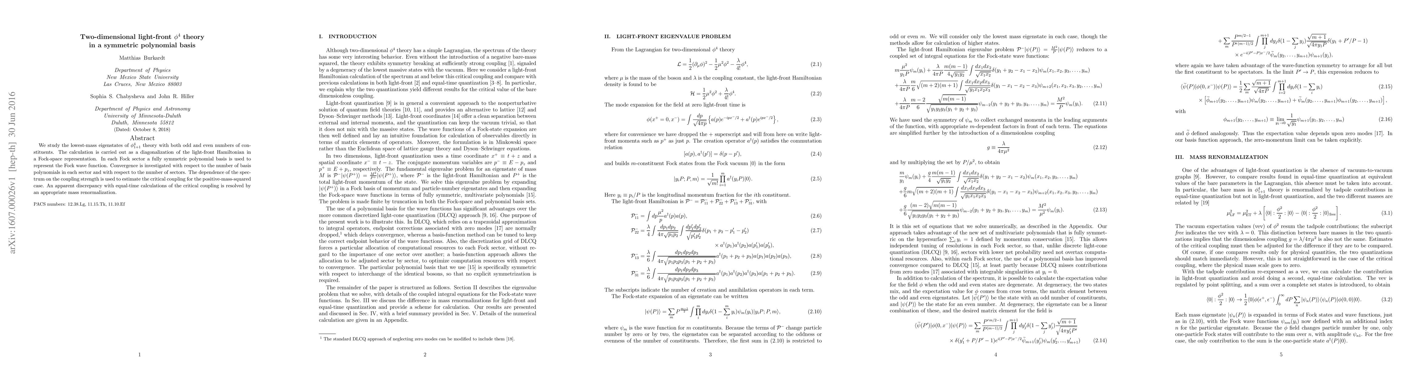 We study the lowest-mass eigenstates of $\phi^4_{1+1}$ theory with both odd and even numbers of constituents. The calculation is carried out as a diagonalization of the light-front Hamiltonian in a Fock-space representation. In each Fock sector a fully symmetric polynomial basis is used to represent the Fock wave function. Convergence is investigated with respect to the number of basis polynomials in each sector and with respect to the number of sectors. The dependence of the spectrum on the coupling strength is used to estimate the critical coupling for the positive-mass-squared case. An apparent discrepancy with equal-time calculations of the critical coupling is resolved by an appropriate mass renormalization.