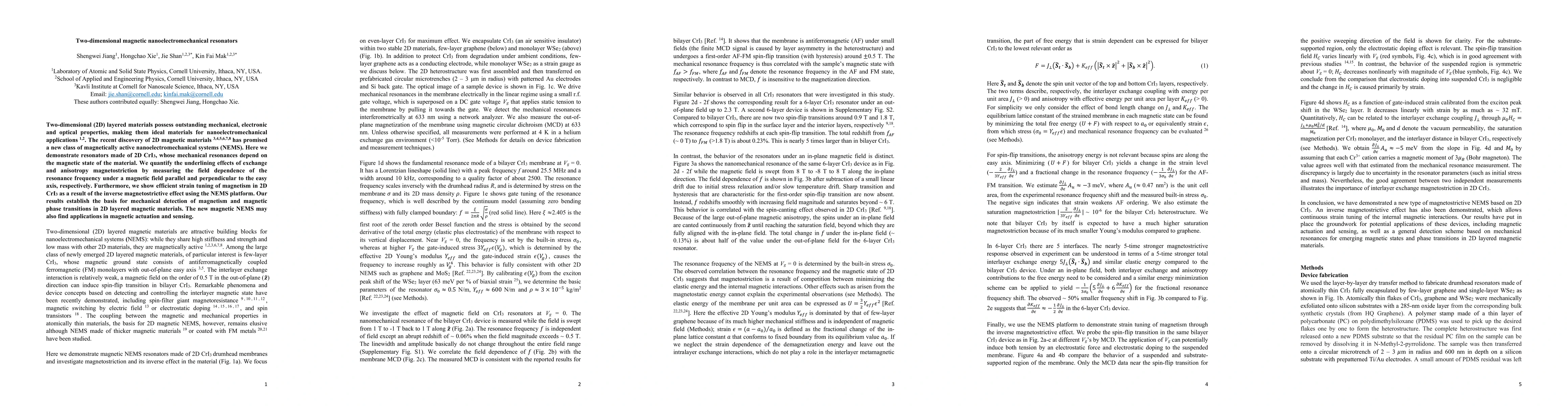 The paper presents a novel approach to mechanically detect magnetism and magnetic phase transitions in 2D layered magnetic materials using 2D CrI3 NEMS resonators, demonstrating efficient strain tuning of magnetism via inverse magnetostrictive effects.