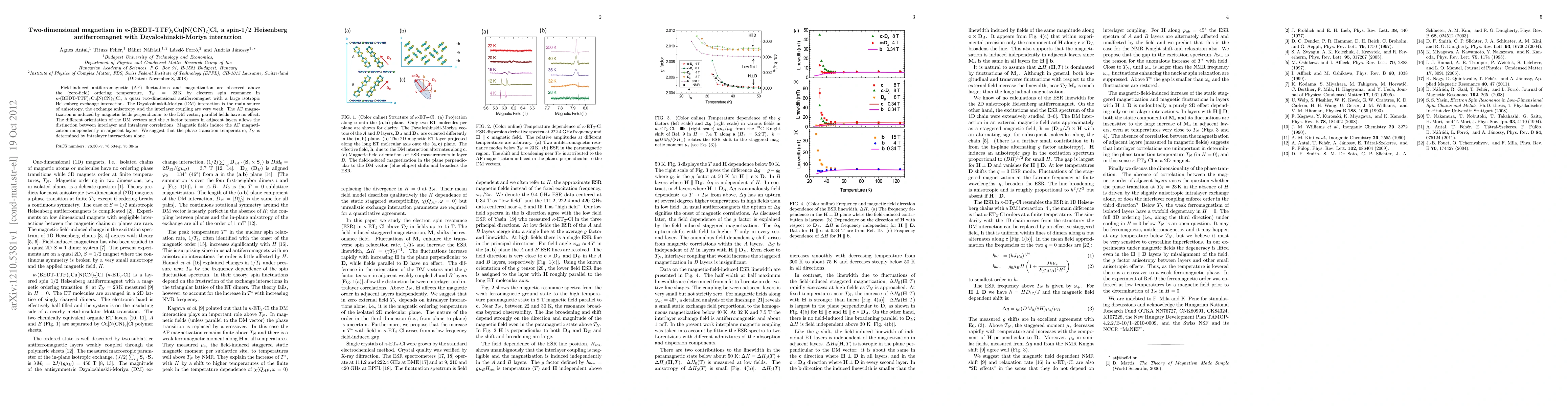 This paper investigates the magnetic properties of kappa-(BEDT-TTF)2Cu[N(CN)2]Cl, revealing field-induced antiferromagnetic fluctuations and magnetization above the zero-field ordering temperature. The study highlights the role of Dzyaloshinskii-Moriya interaction in anisotropy, with weak interlayer coupling, and suggests that the phase transition temperature is governed by intralayer interactions.