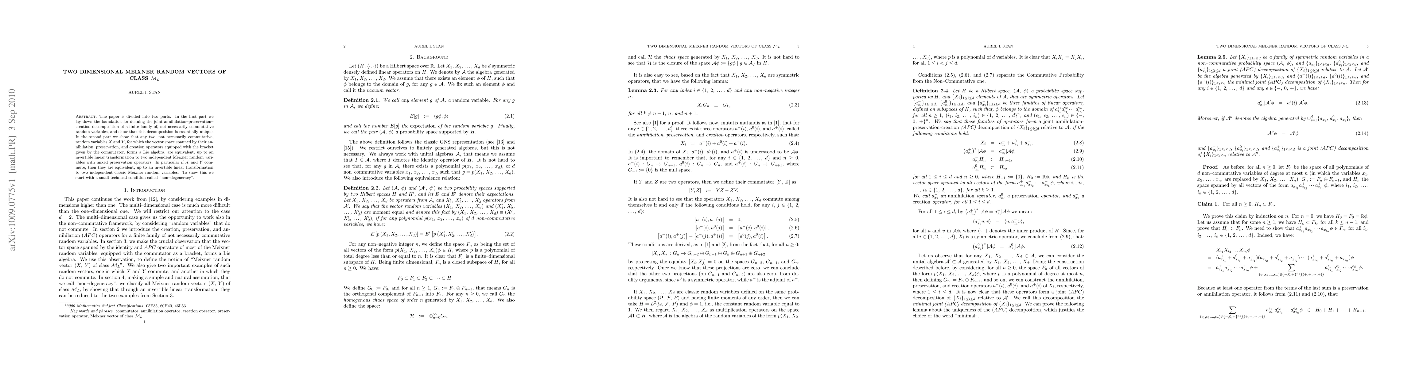 The paper is divided into two parts. In the first part we lay down the foundation for defining the joint annihilation-preservation-creation decomposition of a finite family of, not necessarily commutative random variables, and show that this decomposition is essentially unique. In the second part we show that any two, not necessarily commutative, random variables $X$ and $Y$, for which the vector space spanned by their annihilation, preservation, and creation operators equipped with the bracket given by the commutator, forms a Lie algebra, are equivalent, up to an invertible linear transformation to two independent Meixner random variables with mixed preservation operators. In particular if $X$ and $Y$ commute, then they are equivalent, up to an invertible linear transformation to two independent classic Meixner random variables. To show this we start with a small technical condition called "non-degeneracy".