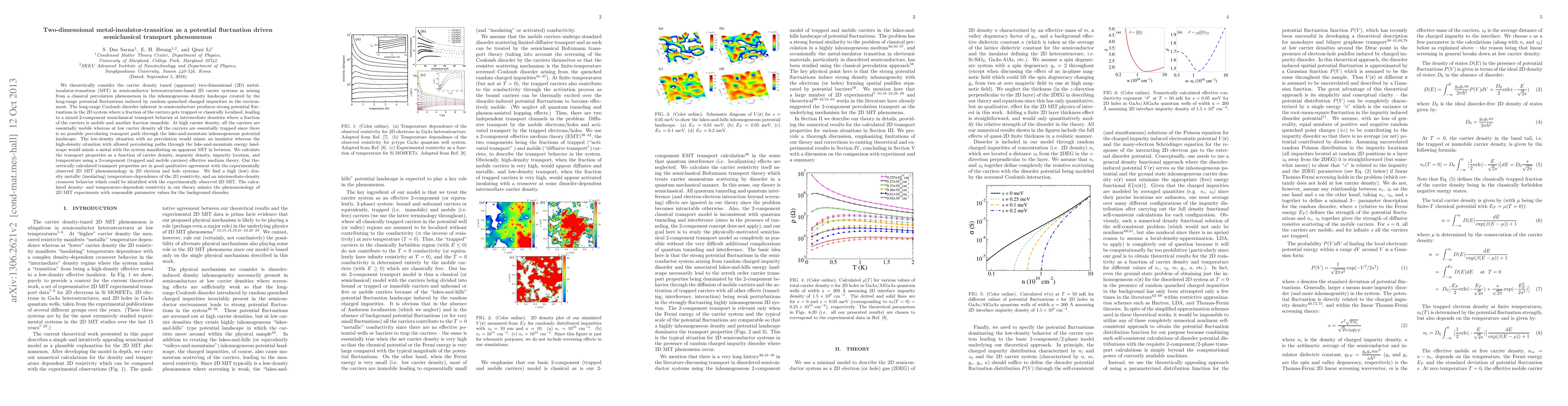 This paper theoretically explores the carrier density-tuned two-dimensional metal-insulator transition in semiconductor heterostructures, attributing it to classical percolation driven by long-range potential fluctuations from charged impurities. The study finds a semiclassical transport behavior with mobile and trapped carriers, leading to an apparent metal-insulator transition at intermediate densities.