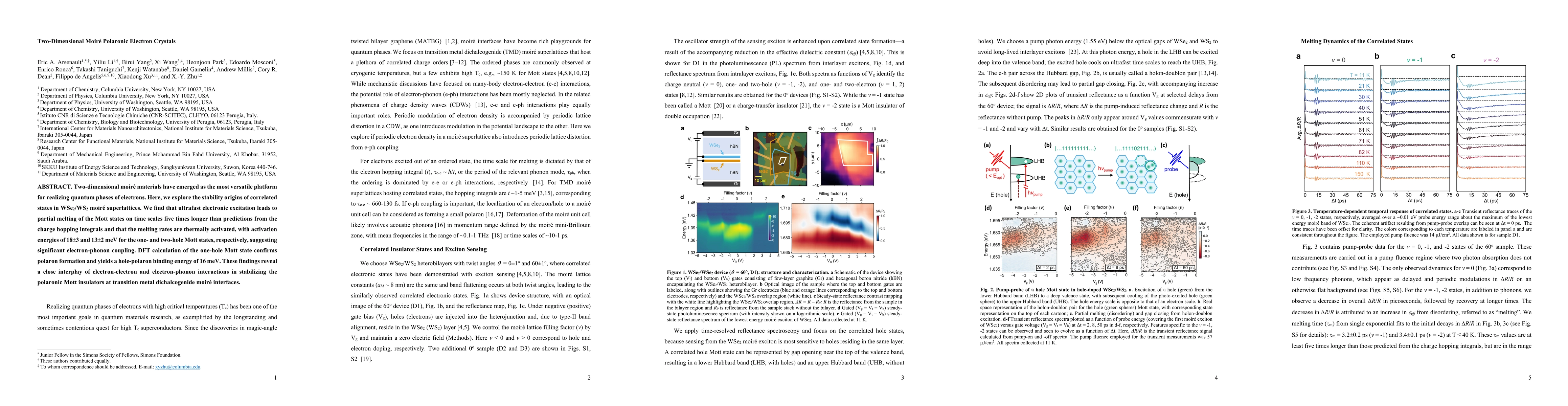This research investigates the stability of correlated states in WSe2/WS2 moiré superlattices, revealing that ultrafast electronic excitation causes the melting of Mott states due to significant electron-phonon coupling, with activation energies of 18 and 13 meV for one- and two-hole Mott states, respectively. Density functional theory confirms the formation of hole-polarons with a binding energy of 16 meV, highlighting the interplay of electron-electron and electron-phonon interactions in these systems.