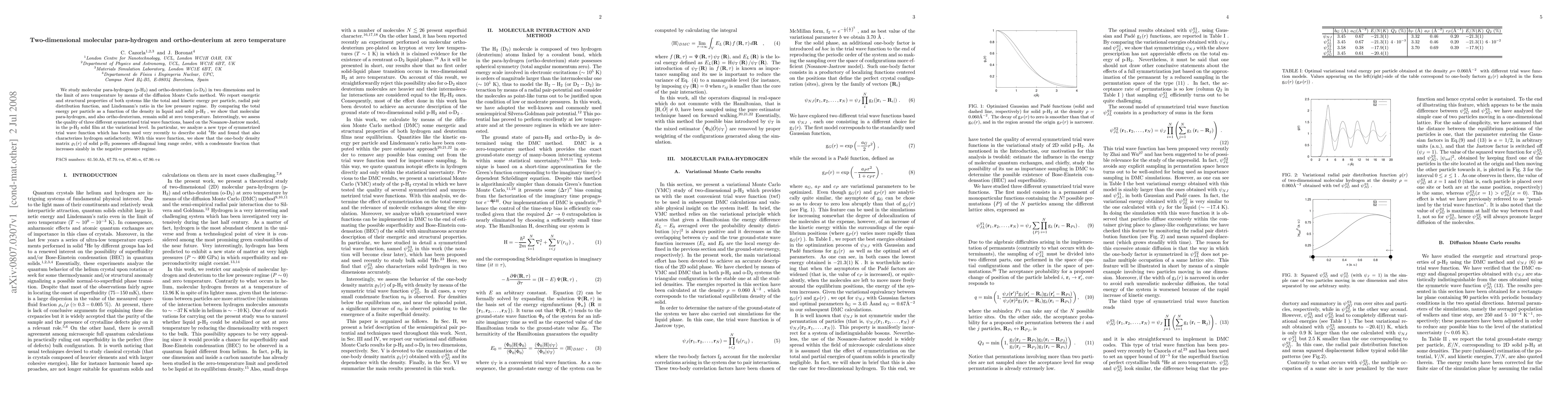 The paper presents a detailed analysis of energetic and structural properties of 2D p-${ m H_{2}}$ and o-${ m D_{2}}$ using advanced computational methods, including the assessment of different symmetrized trial wave functions.