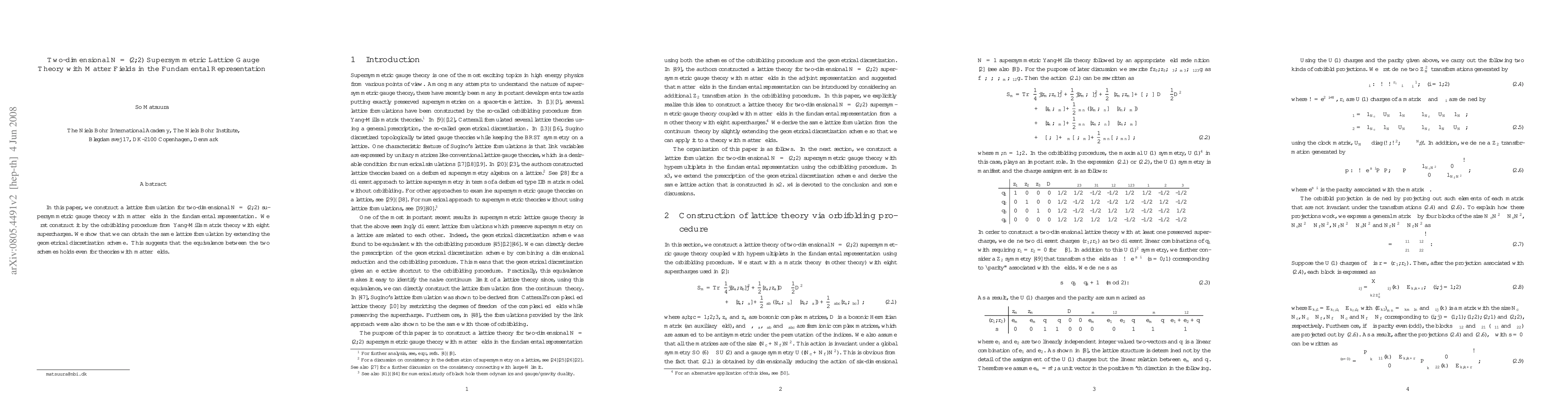 This paper constructs a lattice formulation for two-dimensional N=(2,2) supersymmetric gauge theory with matter fields in the fundamental representation, demonstrating equivalence between the orbifolding procedure and geometrical discretization scheme. The findings suggest that these methods are consistent even when matter fields are included.