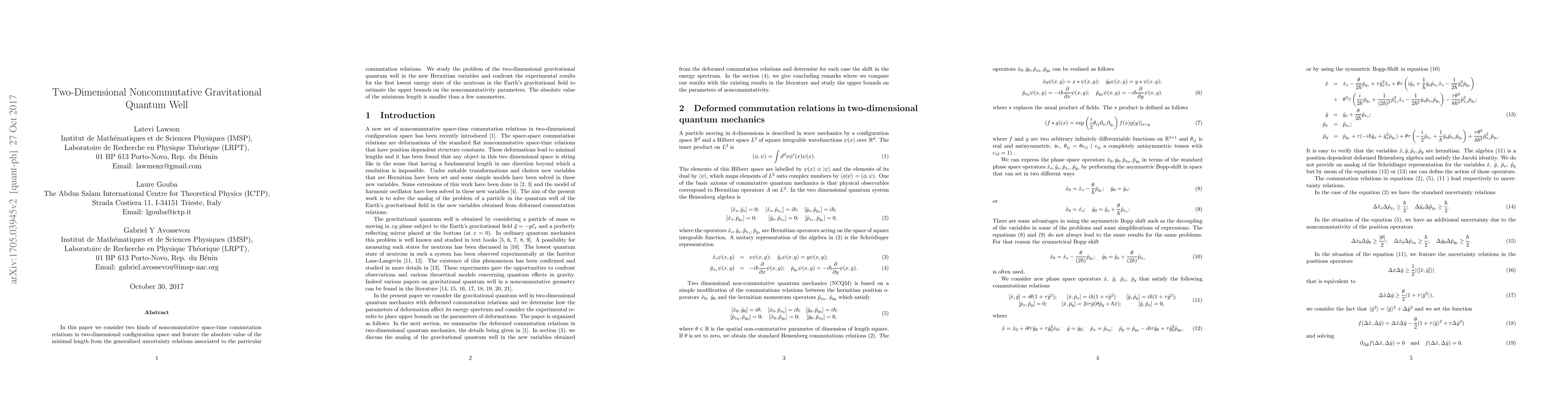 A two-dimensional analog of the modified Heisenberg algebra was used to describe the dynamics of a particle in a gravitational quantum well.