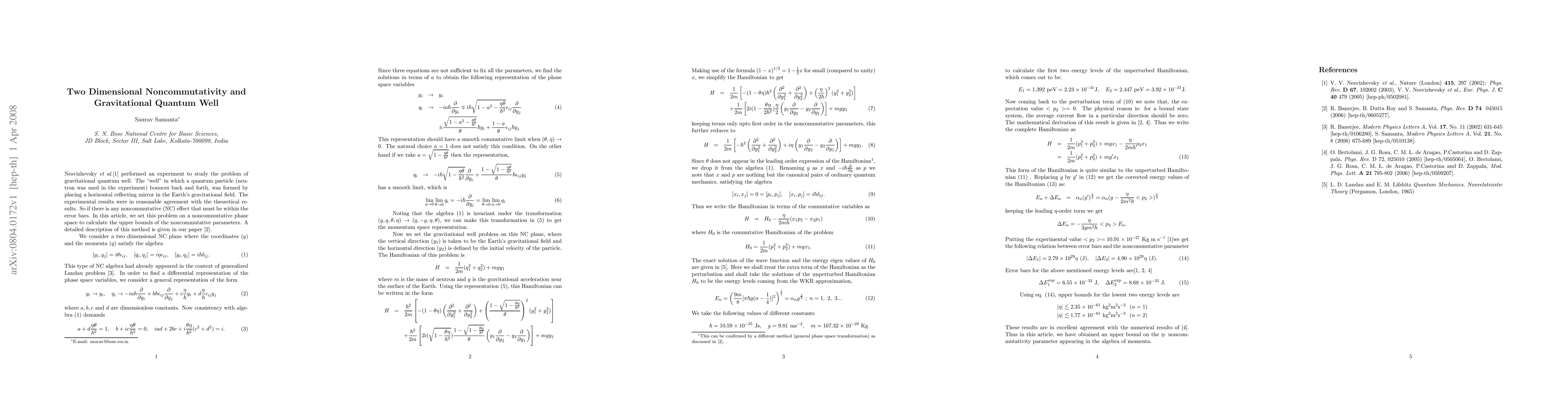 This paper investigates the dynamics of a particle in a gravitational quantum well using representations of position and momentum operators with two-dimensional noncommutativity. It calculates the upper bounds of the noncommutative parameters to understand the effects of noncommutativity in such a system.