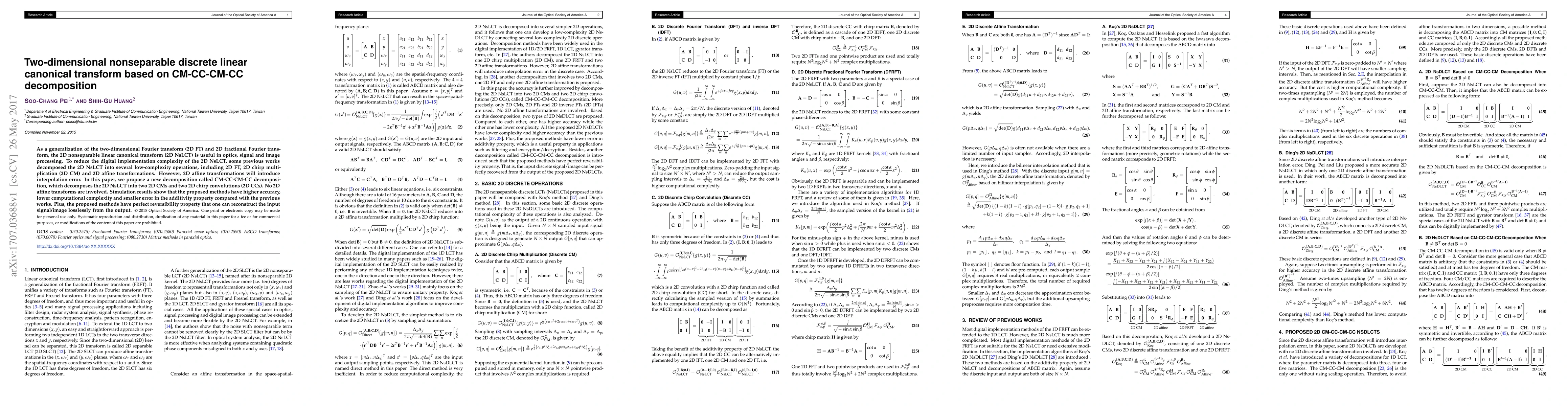 This paper proposes a new CM-CC-CM-CC decomposition for the 2D nonseparable linear canonical transform to reduce implementation complexity without introducing interpolation errors. The method achieves higher accuracy and lower computational complexity compared to previous methods, with perfect reversibility.