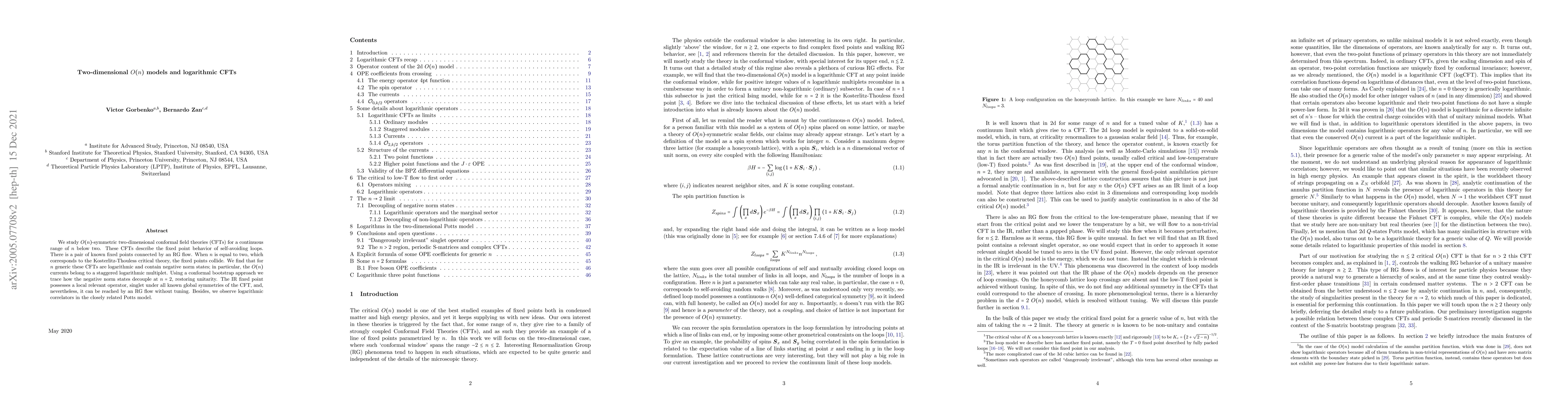 The paper introduces a detailed analysis of logarithmic CFTs in the context of O(n) symmetric models, using a conformal bootstrap method to uncover the decoupling of negative norm states and the restoration of unitarity at n = 2.