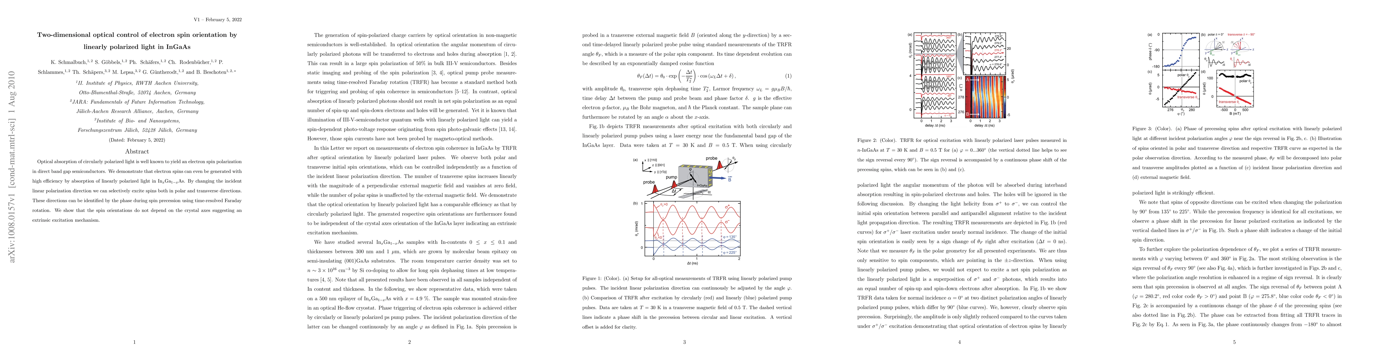 This paper demonstrates that electron spin polarization in InGaAs can be efficiently generated by linearly polarized light, unlike the conventional method using circularly polarized light. The study shows that the spin orientation can be controlled by altering the linear polarization direction, identified via time-resolved Faraday rotation, indicating an extrinsic excitation mechanism independent of crystal axes.