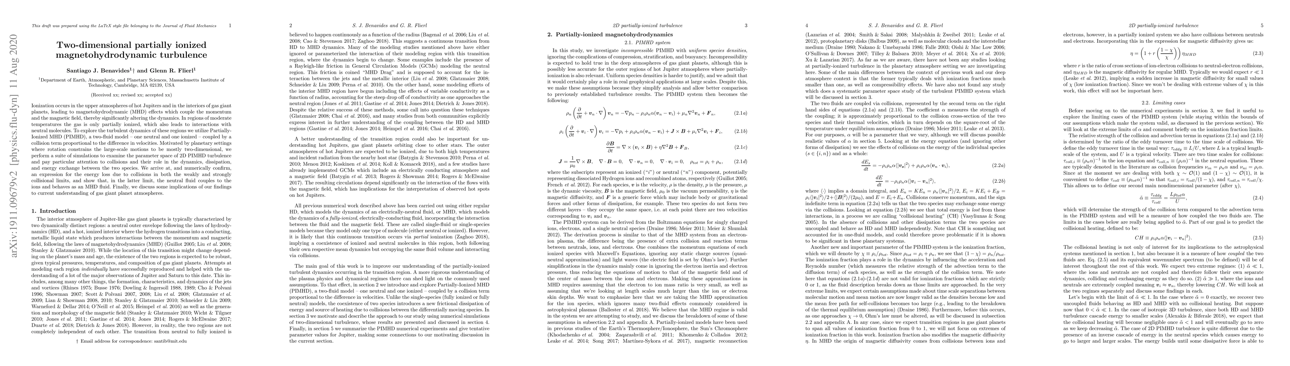 This paper investigates two-dimensional partially ionized magnetohydrodynamic turbulence in the atmospheres of hot Jupiters and gas giants, using a two-fluid model to explore the dynamics and energy exchange between ionized and neutral gases. The study reveals the role of collisions in energy dissipation and shows that in strongly collisional regimes, the neutral fluid behaves like an MHD fluid.