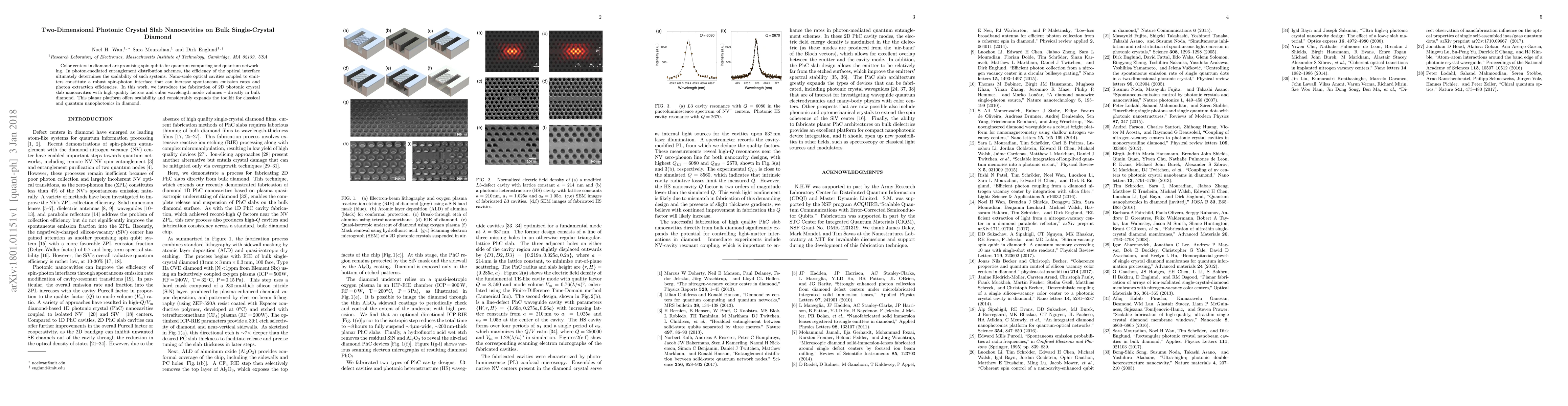 This research develops two-dimensional photonic crystal slab nanocavities within bulk single-crystal diamond to enhance spin-photon interfaces for quantum computing. The fabricated cavities exhibit high quality factors and small mode volumes, significantly boosting scalability and potential applications in both classical and quantum nanophotonics.