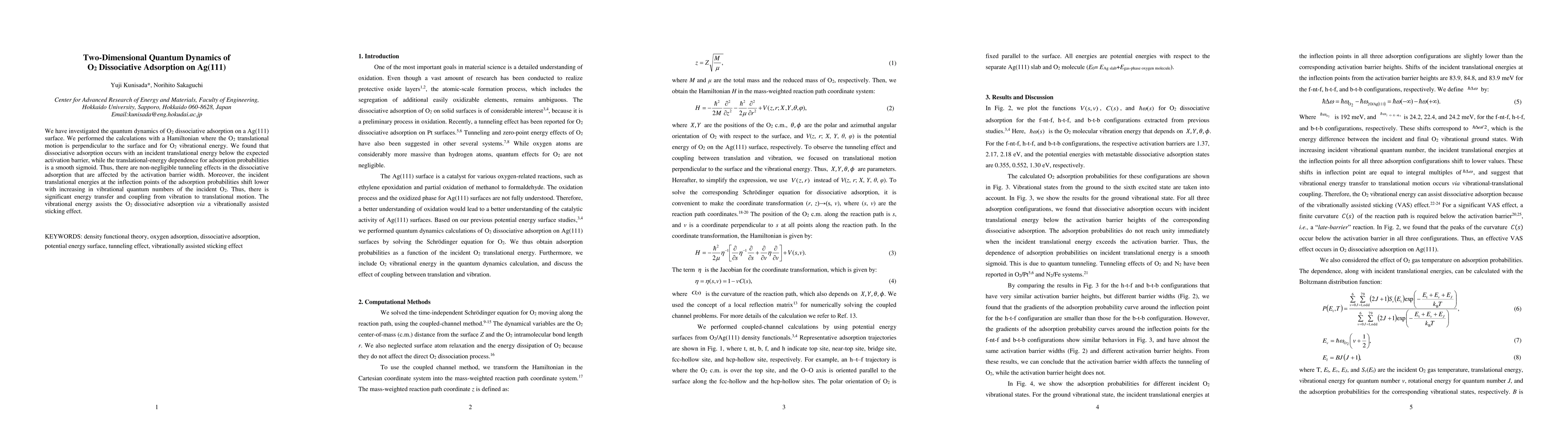 This study investigates the quantum dynamics of O2 dissociative adsorption on Ag(111), revealing that adsorption occurs below the expected activation barrier due to tunneling effects. The adsorption probability shows a smooth sigmoidal dependence on translational energy, with vibrational energy facilitating the process through a coupling mechanism.
