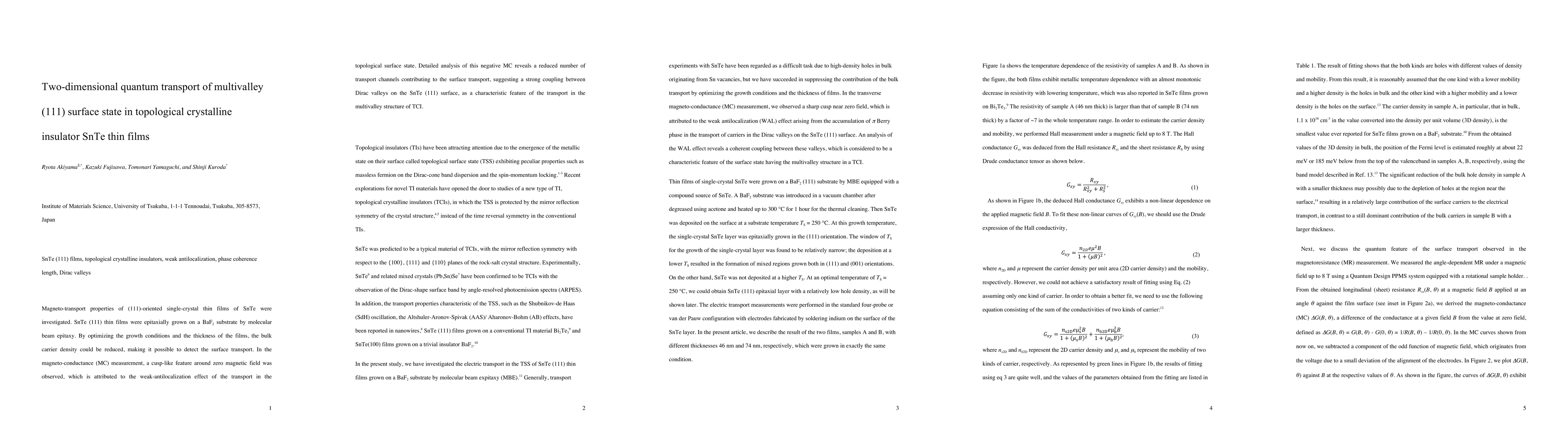 This study investigates the magneto-transport properties of SnTe (111) thin films, grown on BaF2 substrates via molecular beam epitaxy. A cusp-like feature in magneto-conductance measurements indicates weak-antilocalization in the topological surface state, revealing strong coupling between Dirac valleys and reduced transport channels in the multivalley structure.
