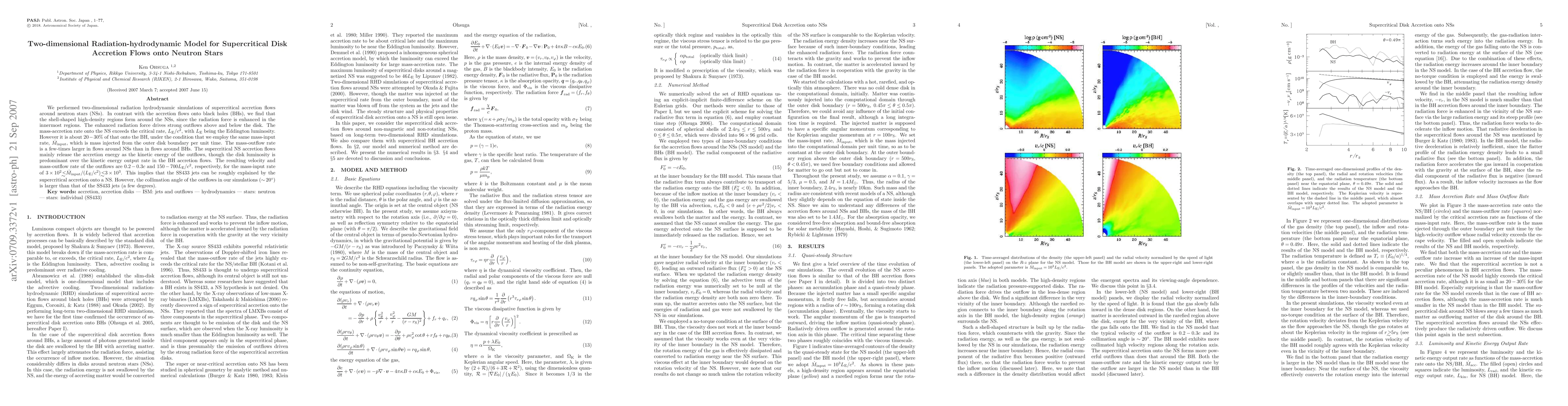 This paper presents two-dimensional radiation hydrodynamic simulations of supercritical accretion flows onto neutron stars, revealing shell-shaped high-density regions and strong outflows driven by enhanced radiation forces. The mass-accretion rate exceeds the Eddington limit but is lower than that onto black holes, with outflows primarily releasing energy as kinetic energy.