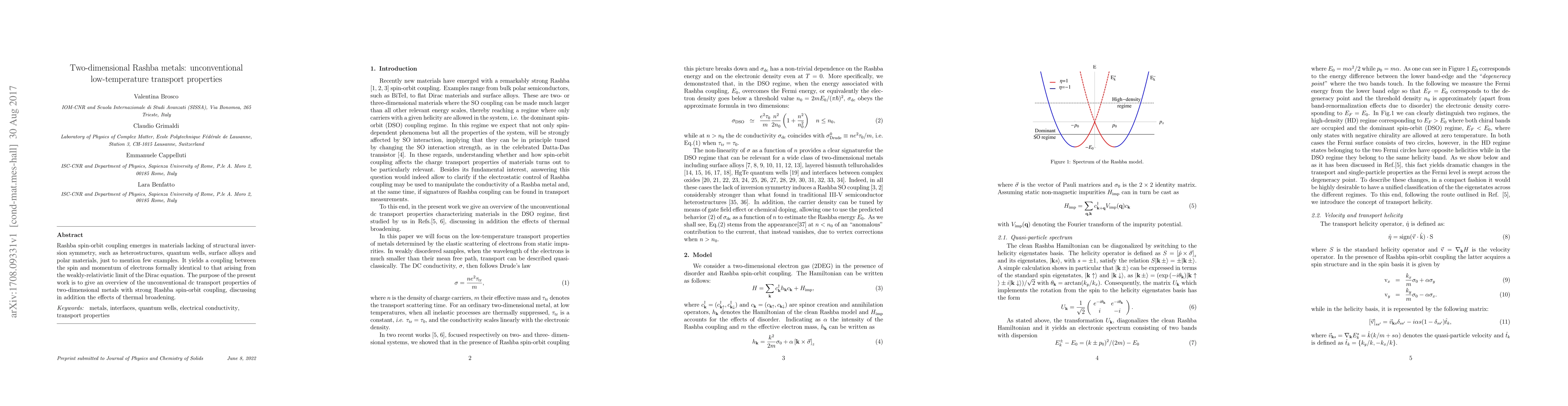 The paper reviews the unique low-temperature transport behaviors in two-dimensional metals exhibiting strong Rashba spin-orbit coupling, emphasizing the influence of thermal broadening on these properties. It highlights how this coupling affects the relationship between electron spin and momentum akin to the Dirac equation.