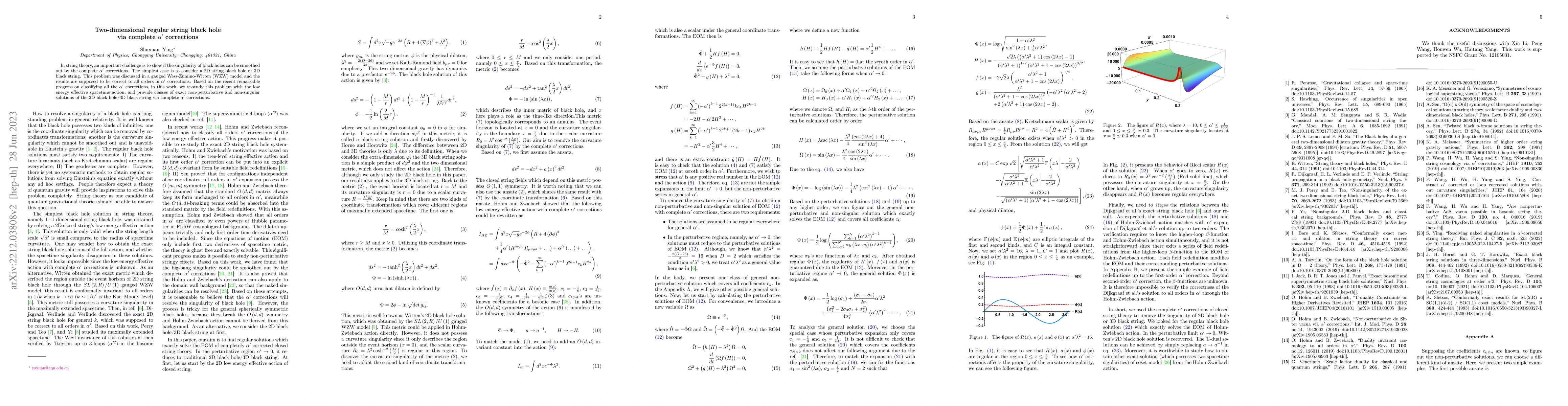 This paper investigates whether complete $\alpha^{\prime}$ corrections in string theory can resolve the singularity in 2D string black holes, presenting exact non-perturbative and non-singular solutions using the low energy effective spacetime action. The findings suggest that these corrections can indeed smooth out the black hole singularity.