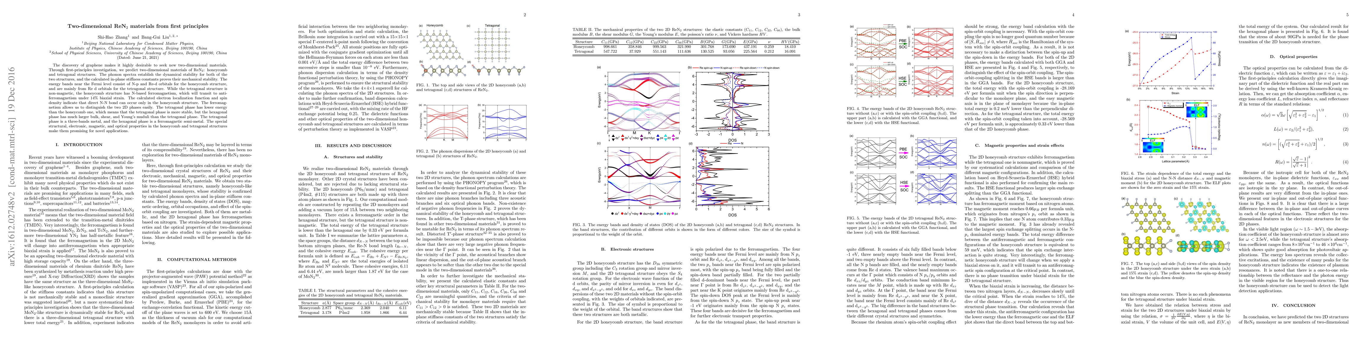 Researchers predict two new 2D materials from ReN$_2$: a honeycomb structure with ferromagnetic properties and a tetragonal structure that is non-magnetic but more stable.