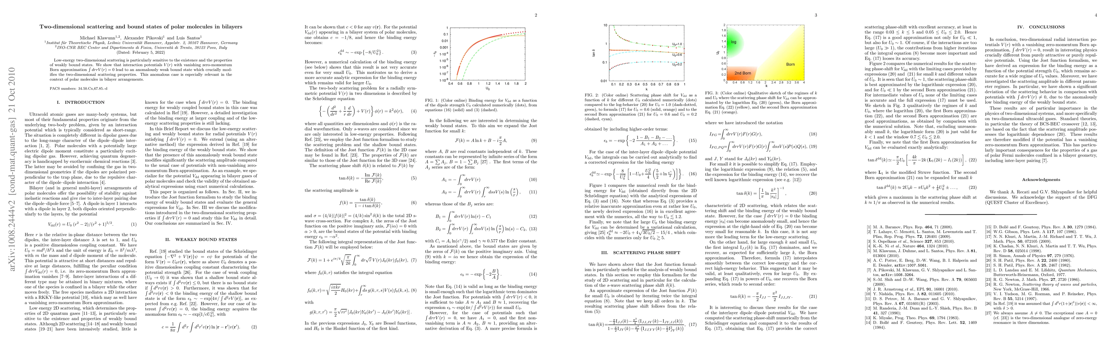 Low-energy two-dimensional scattering is particularly sensitive to the existence and properties of weakly-bound states. We show that interaction potentials $V(r)$ with vanishing zero-momentum Born approximation $\int d^2r V(r)=0$ lead to an anomalously weak bound state which crucially modifies the two-dimensional scattering properties. This anomalous case is especially relevant in the context of polar molecules in bilayer arrangements.