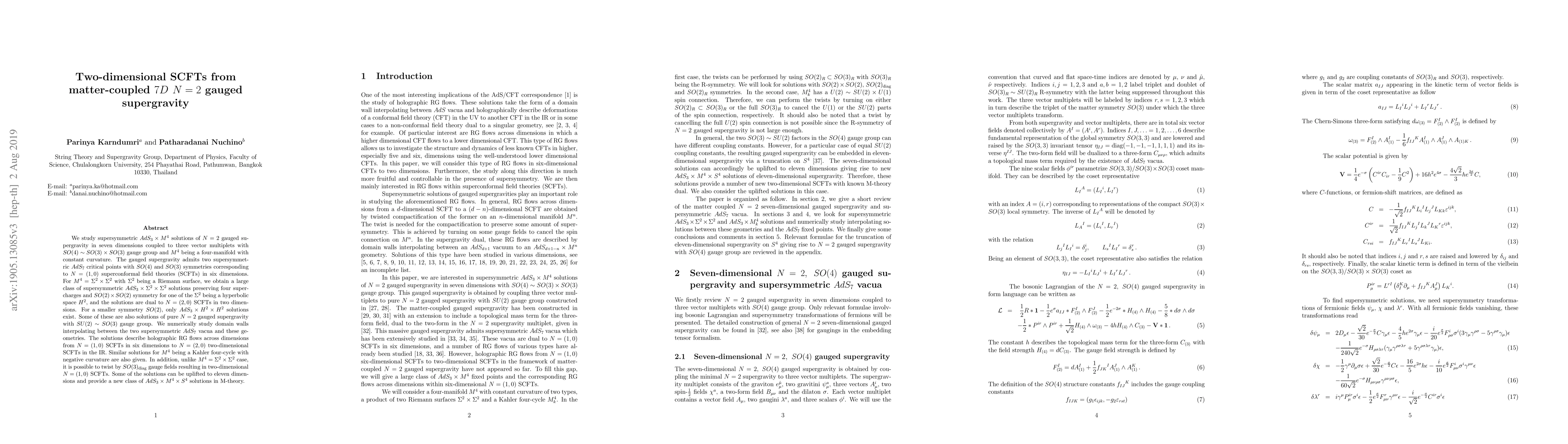 This paper investigates supersymmetric $AdS_3\times M^4$ solutions in $N=2$ gauged supergravity, revealing connections between seven-dimensional solutions and two-dimensional $N=(2,0)$ superconformal field theories via holographic RG flows. It explores various compactifications and symmetries, including specific cases where $M^4$ is a product of Riemann surfaces and hyperboloids, and presents solutions that can be uplifted to M-theory.