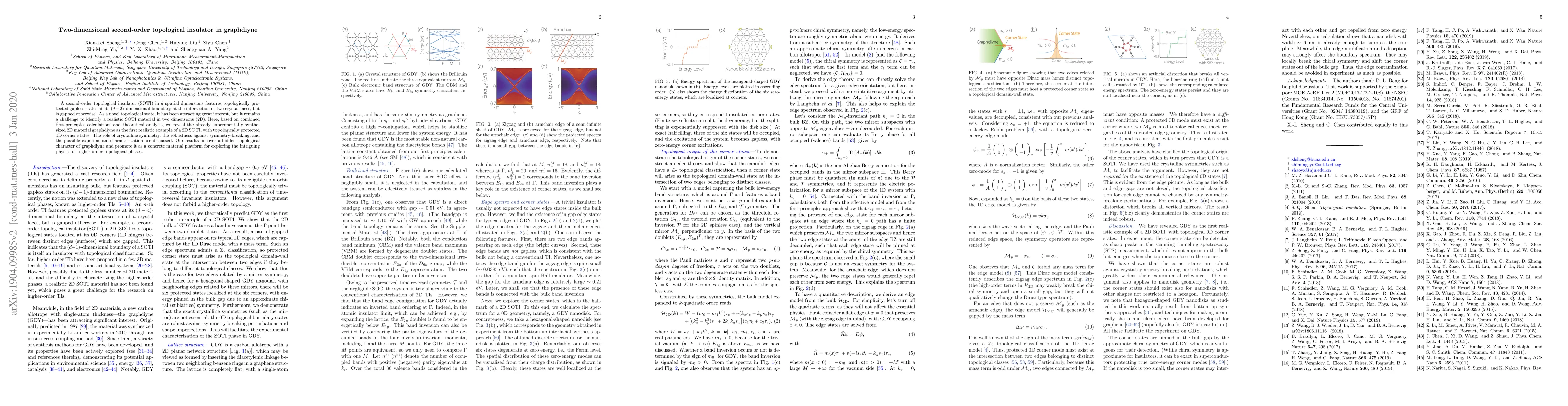 This paper identifies graphdiyne as the first realistic two-dimensional second-order topological insulator (SOTI), featuring topologically protected zero-dimensional corner states. The study discusses the material's robustness and potential experimental characterization, highlighting its significance for exploring higher-order topological phases.
