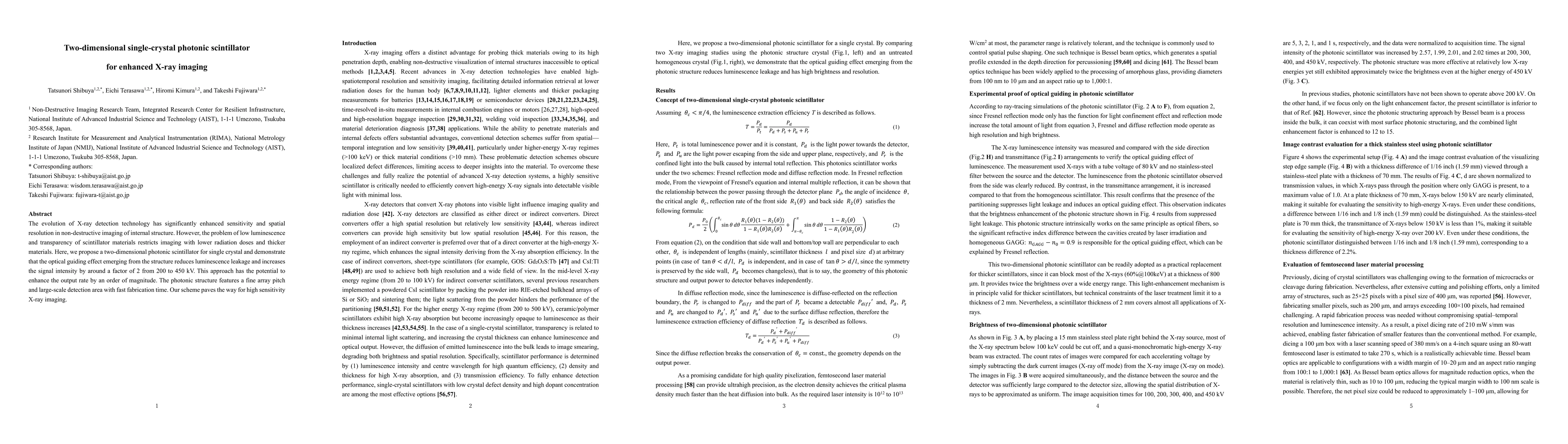 The evolution of X-ray detection technology has significantly enhanced sensitivity and spatial resolution in non-destructive imaging of internal structure. However, the problem of low luminescence and transparency of scintillator materials restricts imaging with lower radiation doses and thicker materials. Here, we propose a two-dimensional photonic scintillator for single crystal and demonstrate that the optical guiding effect emerging from the structure reduces luminescence leakage and increases the signal intensity by around a factor of 2 from 200 to 450 kV. This approach has the potential to enhance the output rate by an order of magnitude. The photonic structure features a fine array pitch and large-scale detection area with fast fabrication time. Our scheme paves the way for high sensitivity X-ray imaging.