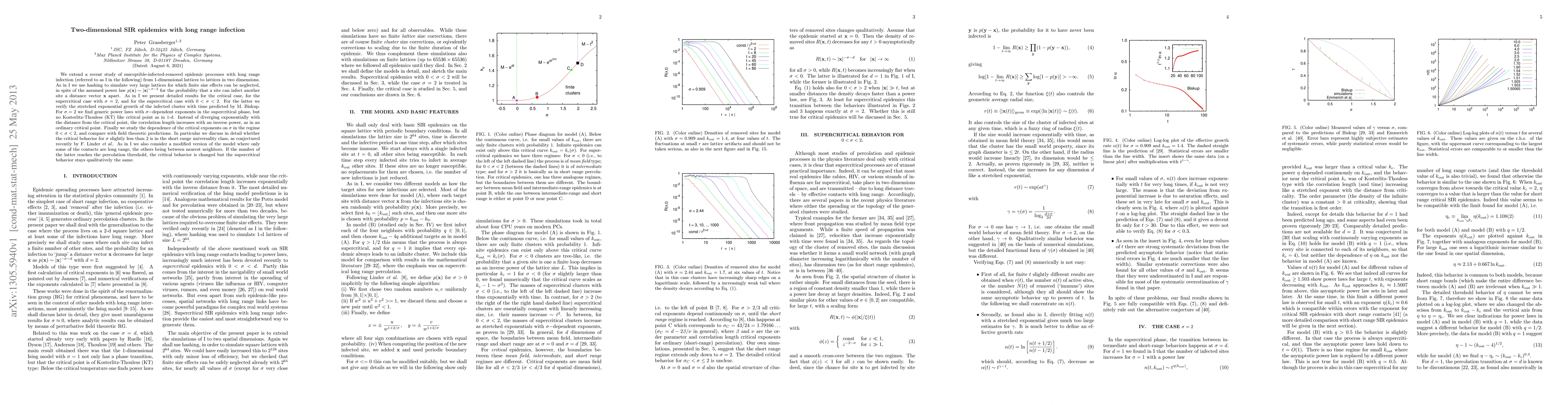 We extend a recent study of susceptible-infected-removed epidemic processes with long range infection (referred to as I in the following) from 1-dimensional lattices to lattices in two dimensions. As in I we use hashing to simulate very large lattices for which finite size effects can be neglected, in spite of the assumed power law $p({\bf x})\sim |{\bf x}|^{-\sigma-2}$ for the probability that a site can infect another site a distance vector ${\bf x}$ apart. As in I we present detailed results for the critical case, for the supercritical case with $\sigma = 2$, and for the supercritical case with $0< \sigma < 2$. For the latter we verify the stretched exponential growth of the infected cluster with time predicted by M. Biskup. For $\sigma=2$ we find generic power laws with $\sigma-$dependent exponents in the supercritical phase, but no Kosterlitz-Thouless (KT) like critical point as in 1-d. Instead of diverging exponentially with the distance from the critical point, the correlation length increases with an inverse power, as in an ordinary critical point. Finally we study the dependence of the critical exponents on $\sigma$ in the regime $0<\sigma <2$, and compare with field theoretic predictions. In particular we discuss in detail whether the critical behavior for $\sigma$ slightly less than 2 is in the short range universality class, as conjectured recently by F. Linder {\it et al.}. As in I we also consider a modified version of the model where only some of the contacts are long range, the others being between nearest neighbors. If the number of the latter reaches the percolation threshold, the critical behavior is changed but the supercritical behavior stays qualitatively the same.