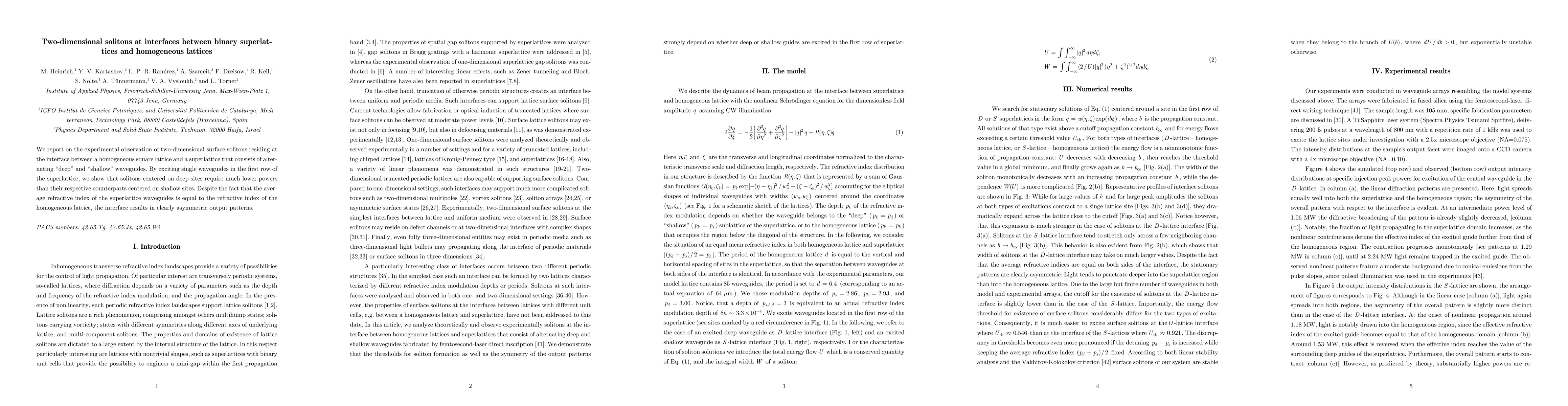 We report on the experimental observation of two-dimensional surface solitons residing at the interface between a homogeneous square lattice and a superlattice that consists of alternating "deep" and "shallow" waveguides. By exciting single waveguides in the first row of the superlattice, we show that solitons centered on deep sites require much lower powers than their respective counterparts centered on shallow sites. Despite the fact that the average refractive index of the superlattice waveguides is equal to the refractive index of the homogeneous lattice, the interface results in clearly asymmetric output patterns.