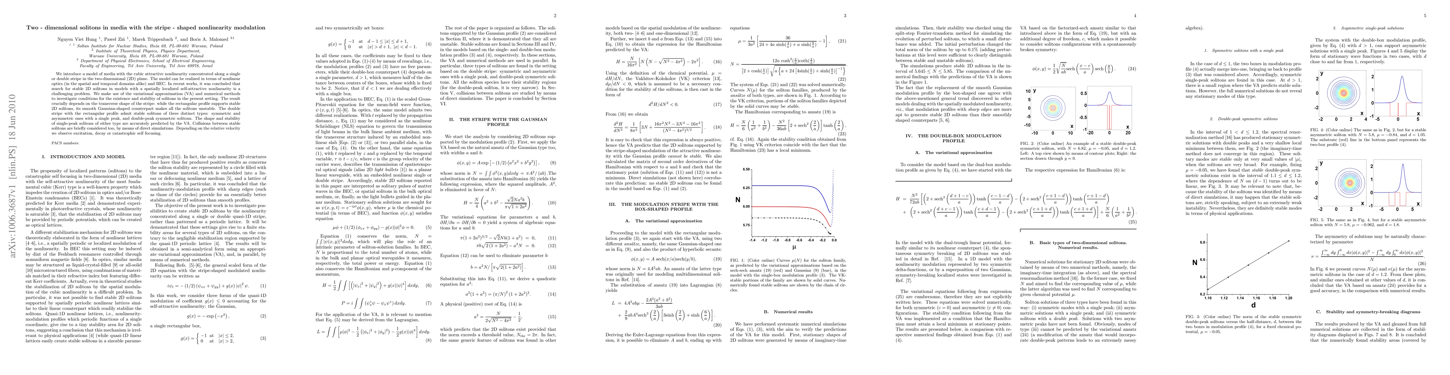 Researchers found stable 2D solitons in a media model with striped nonlinearity, but their stability depends on the stripe's shape and velocity during collisions.