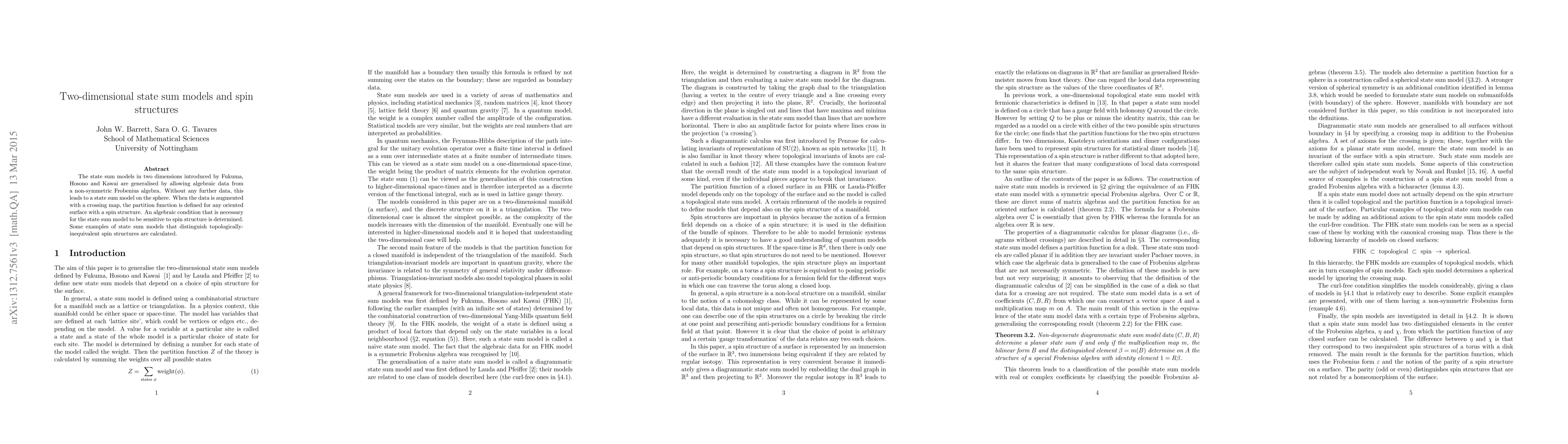 Researchers develop a new framework for state sum models in 2D, allowing them to capture spin structures on any oriented surface. The model can distinguish between topologically-inequivalent spin structures without additional data.