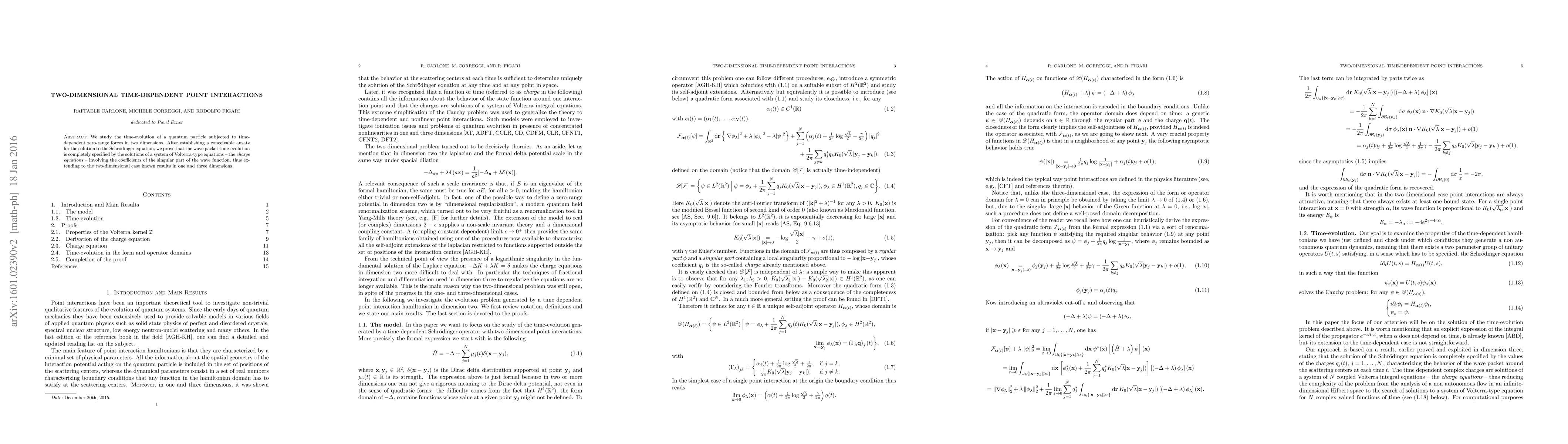 This paper investigates the time-evolution of a quantum particle under time-dependent zero-range forces in two dimensions, proving that the wave packet's evolution is governed by a system of Volterra-type equations called the charge equations, extending similar results from one and three dimensions.