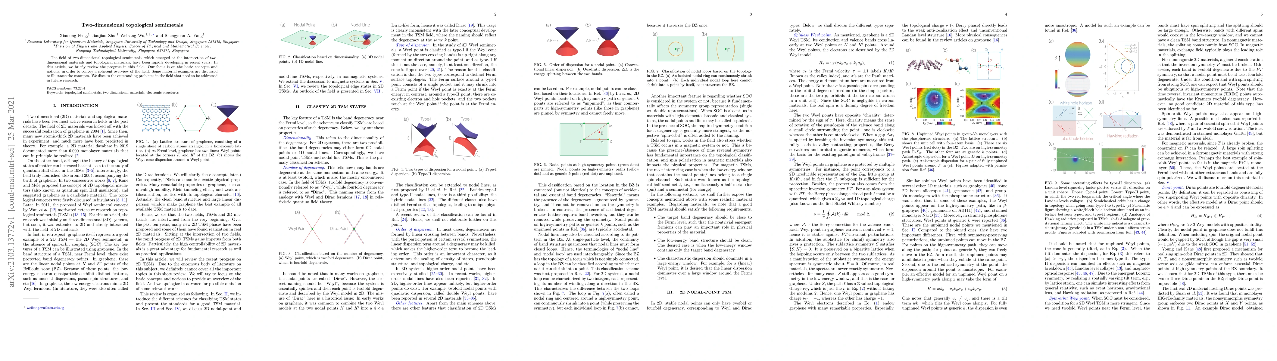 This paper reviews the progress in two-dimensional topological semimetals, highlighting key concepts and outstanding research needs. It discusses material examples to illustrate these concepts and aims to provide a coherent overview of the rapidly developing field.