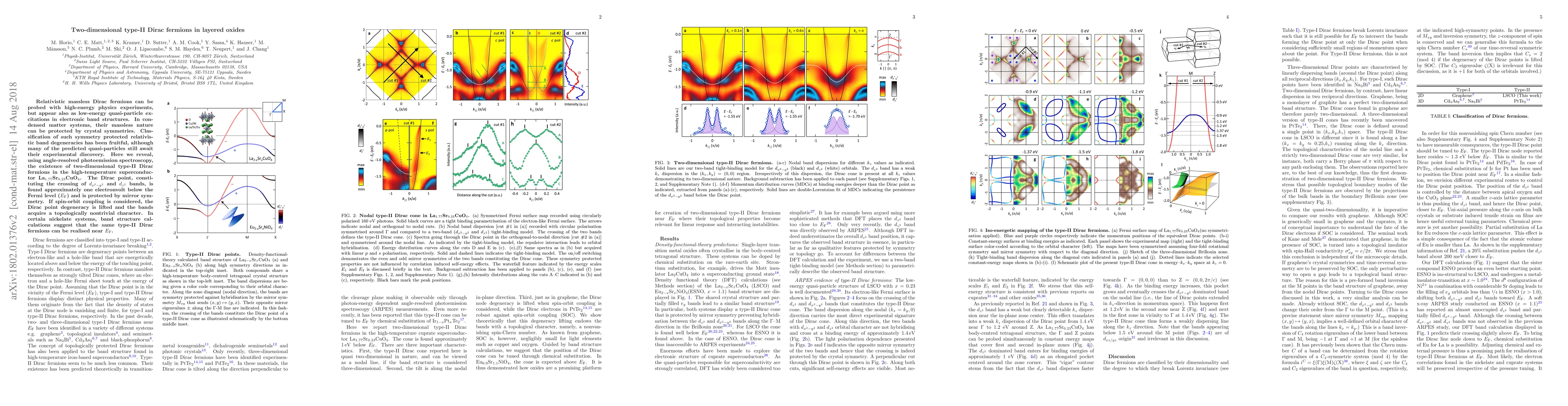 This paper reveals the existence of two-dimensional type-II Dirac fermions in the layered oxide high-temperature superconductor La$_{1.77}$Sr$_{0.23}$CuO$_4$ using angle-resolved photoemission spectroscopy. The Dirac point, protected by mirror symmetry, is found near the Fermi level, with topological non-triviality emerging when spin-orbit coupling is included.