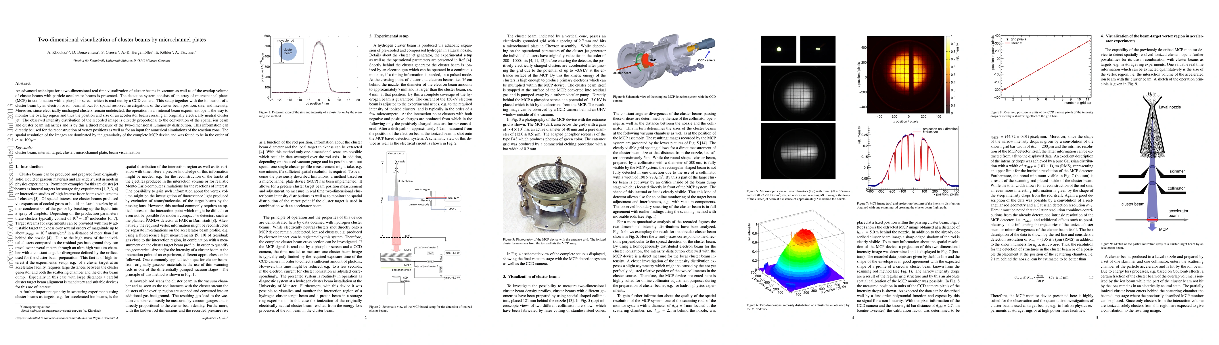 This paper presents a technique for real-time two-dimensional visualization of cluster beams using microchannel plates combined with a phosphor screen and CCD camera. The method allows for spatial resolved investigations of cluster beams and their overlap with accelerator beams, enabling the reconstruction of vertex positions and input for reaction simulations.