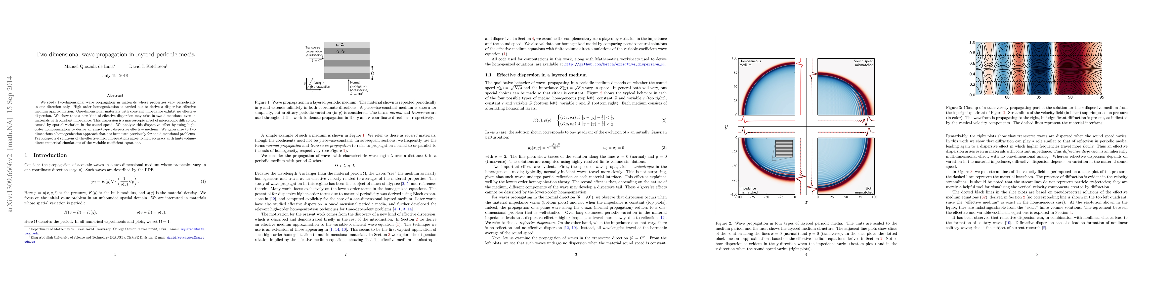 The paper presents a high-order homogenization method to derive an anisotropic, dispersive effective medium for two-dimensional wave propagation in layered periodic media with spatial variation in sound speed.