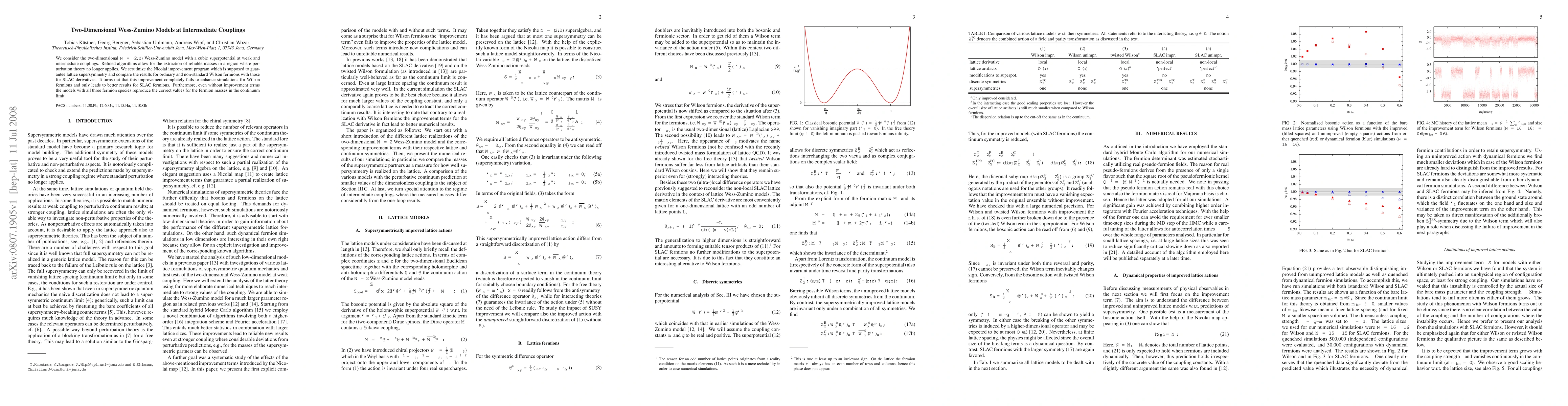 Researchers studied the 2D Wess-Zumino model at intermediate couplings using refined algorithms and compared results with different fermion types, finding that the improvement program enhanced simulations for SLAC fermions but failed to improve Wilson fermion results.