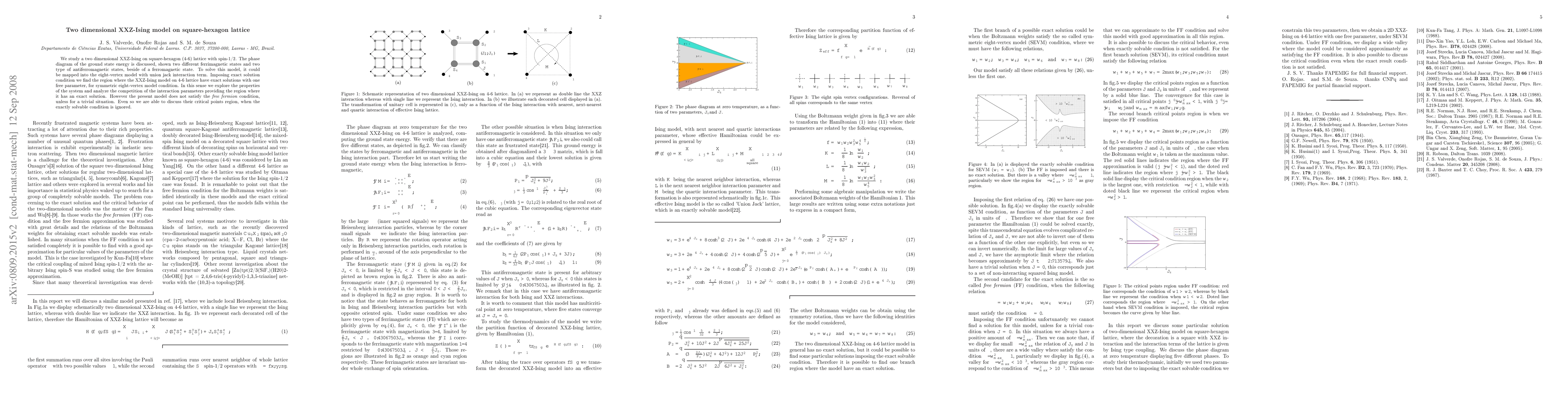 This paper investigates the two-dimensional XXZ-Ising model on a square-hexagon lattice, revealing a phase diagram with ferrimagnetic and antiferromagnetic states, alongside a ferromagnetic state. The model is mapped to an eight-vertex model, and exact solutions are found under specific symmetric conditions, though not satisfying the free fermion condition.