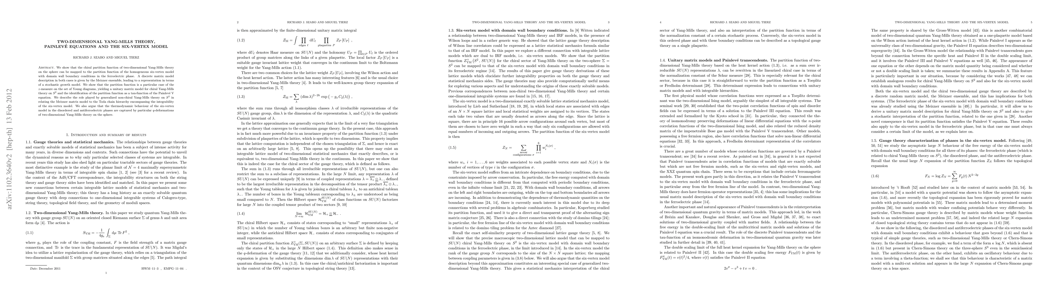 This paper establishes a connection between the chiral partition function of two-dimensional Yang-Mills theory and the six-vertex model, showing they are both described by the Meixner ensemble. It identifies the partition function as a tau-function of the Painlevé V equation and links the six-vertex model to the Toda chain hierarchy.
