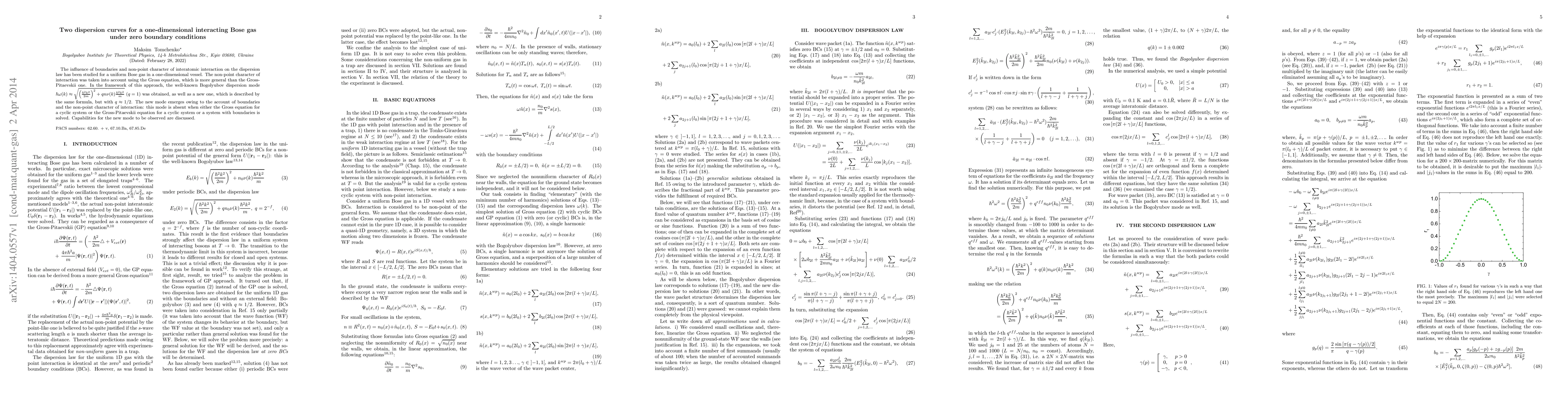The influence of boundaries and non-point character of interatomic interaction on the dispersion law has been studied for a uniform Bose gas in a one-dimensional vessel. The non-point character of interaction was taken into account using the Gross equation, which is more general than the Gross-Pitaevskii one. In the framework of this approach, the well-known Bogolyubov dispersion mode \hbar\omega(k)=[(\hbar^{2}k^{2}/2m) ^{2}+qn\nu(k)\hbar^{2}k^{2}/m]^{1/2} (q=1) was obtained, as well as a new one, which is described by the same formula, but with q= 1/2. The new mode emerges owing to the account of boundaries and the non-point character of interaction: this mode is absent when either the Gross equation for a cyclic system or the Gross-Pitaevskii equation for a cyclic system or a system with boundaries is solved. Capabilities for the new mode to be observed are discussed.