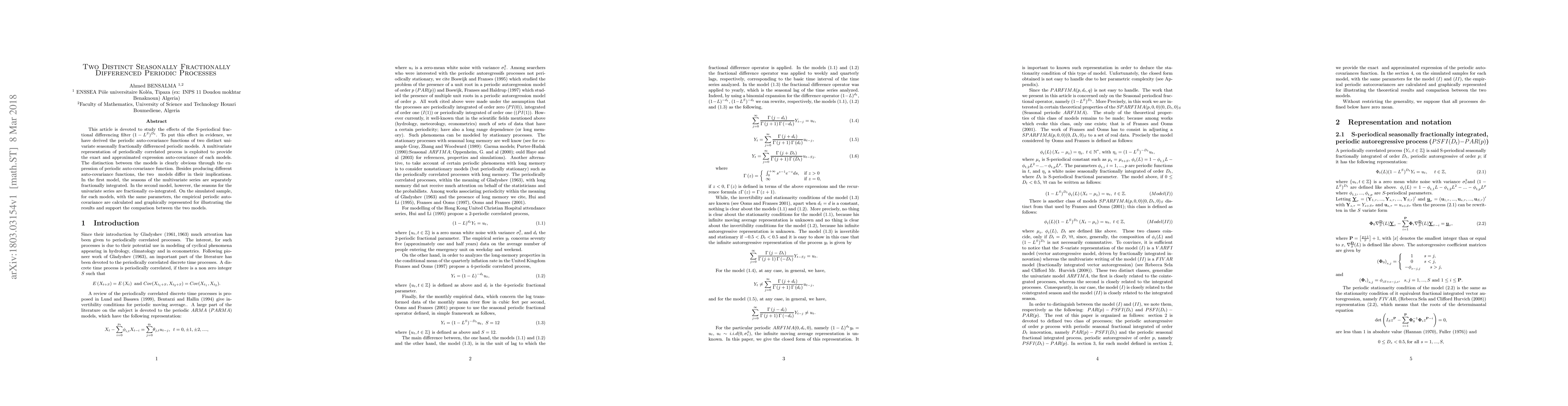 This article is devoted to study the effects of the S-periodical fractional differencing filter $(1-L^S)^{D_t}$. To put this effect in evidence, we have derived the periodic auto-covariance functions of two distinct univariate seasonally fractionally differenced periodic models. A multivariate representation of periodically correlated process is exploited to provide the exact and approximated expression auto-covariance of each models. The distinction between the models is clearly obvious through the expression of periodic autocovariance function. Besides producing different autocovariance functions, the two models differ in their implications. In the first model, the seasons of the multivariate series are separately fractionally integrated. In the second model, however, the seasons for the univariate series are fractionally co-integrated. On the simulated sample, for each models, with the same parameters, the empirical periodic autocovariance are calculated and graphically represented for illustrating the results and support the comparison between the two models.