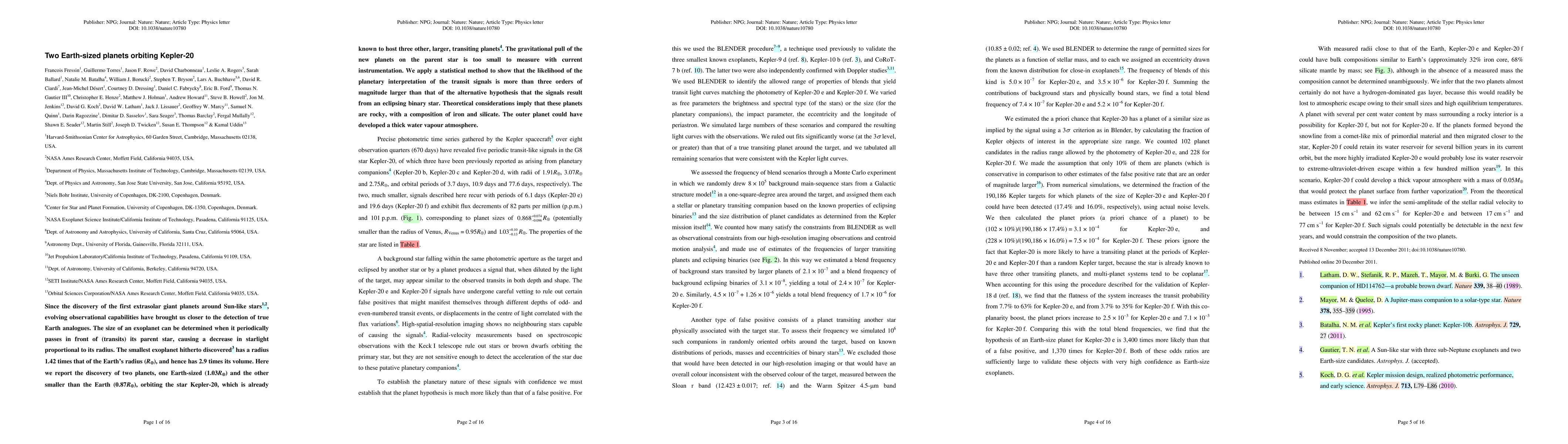 This paper reports the discovery of two Earth-sized planets orbiting the star Kepler-20, with radii of 1.03R Earth and 0.87R Earth, respectively. The study confirms their planetary nature using statistical methods and suggests they are likely rocky in composition.